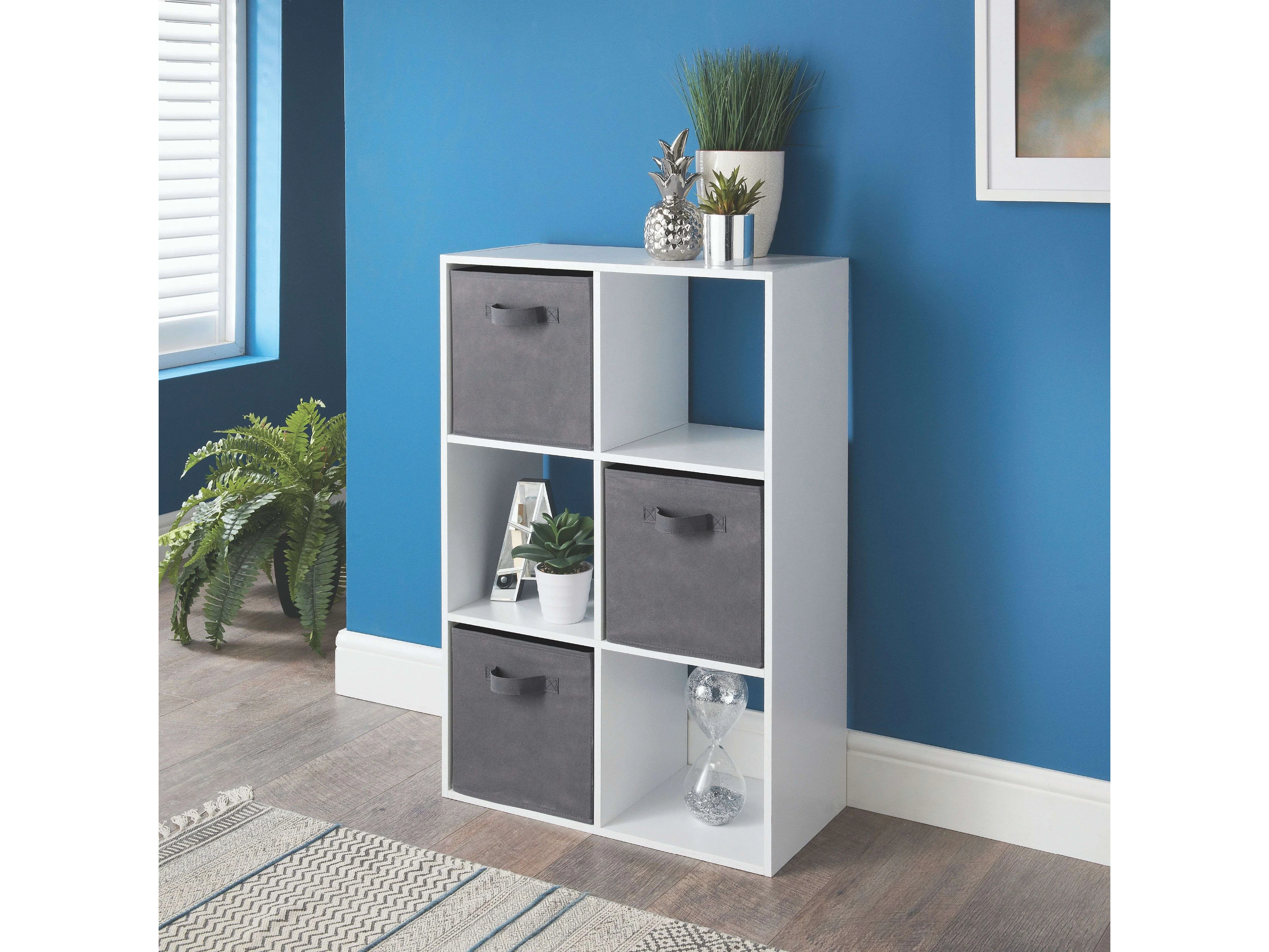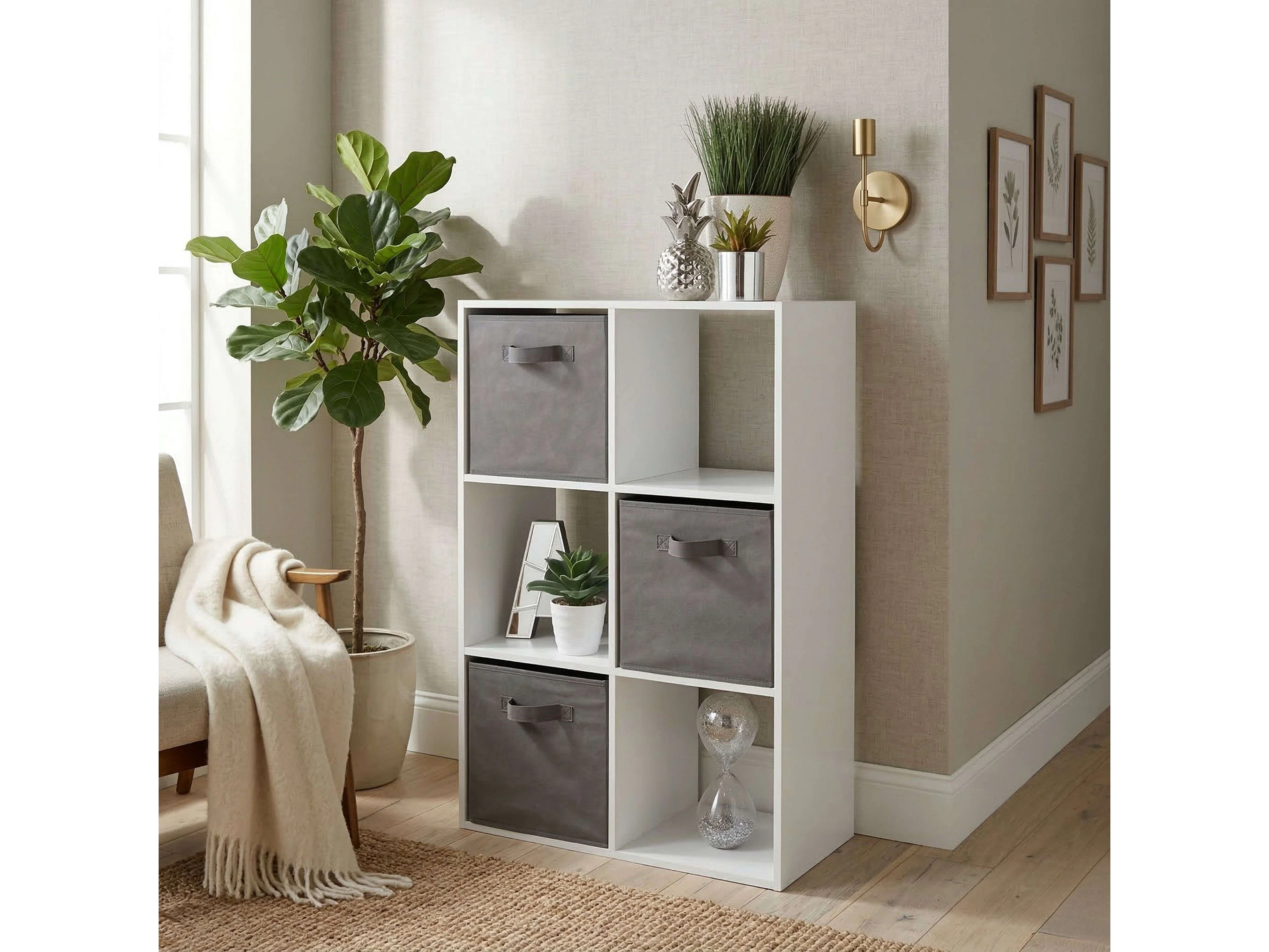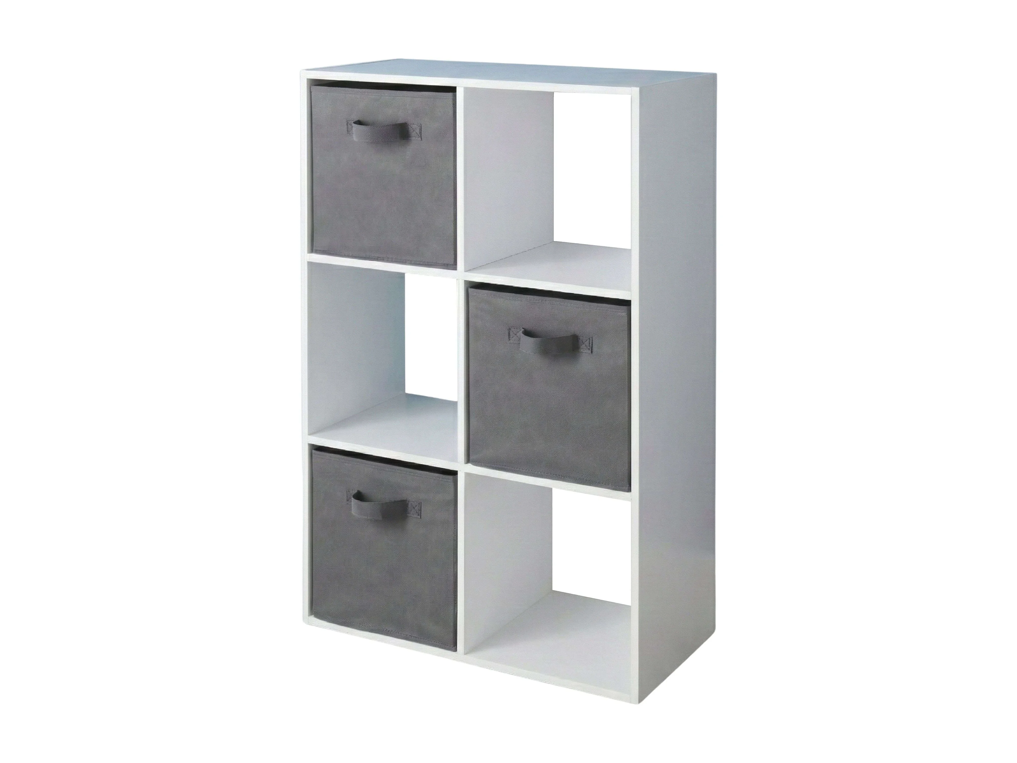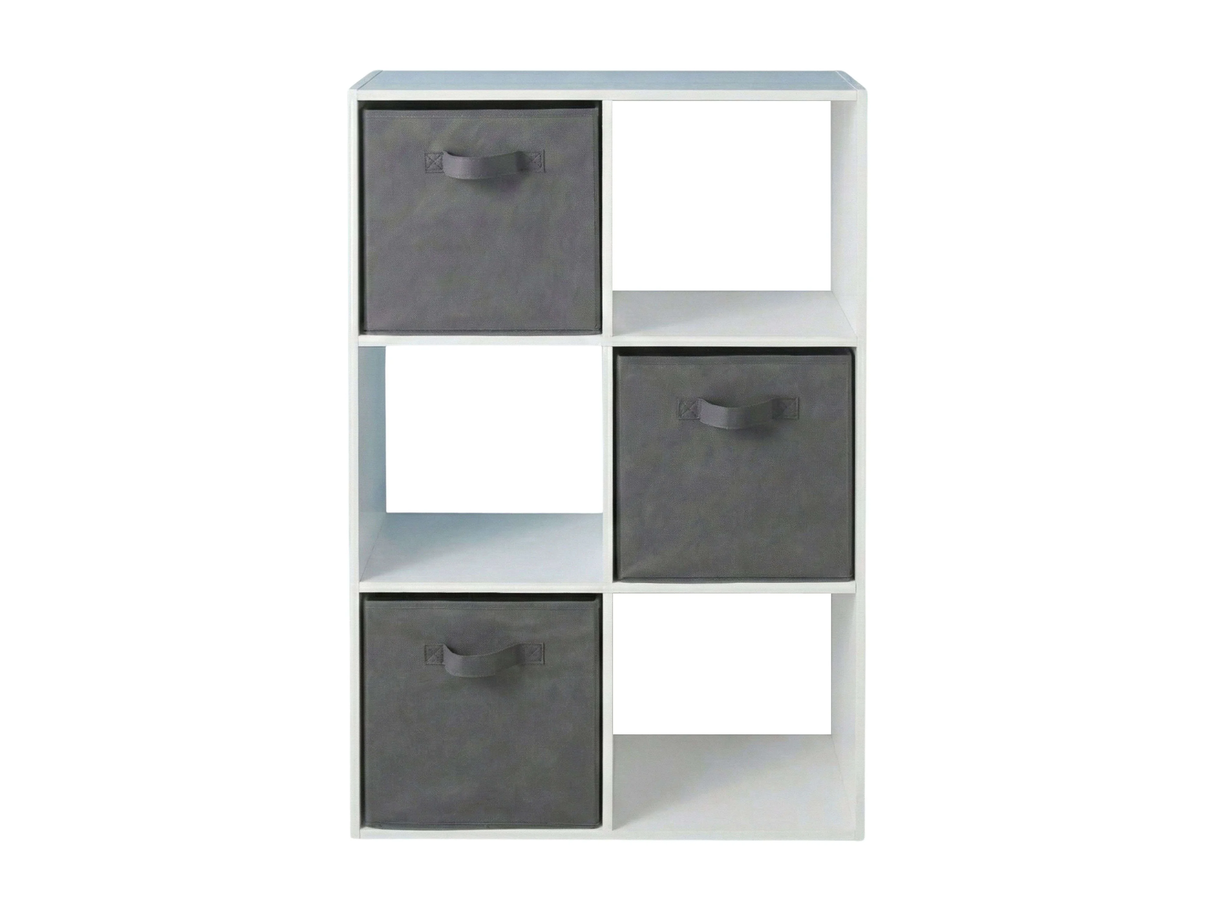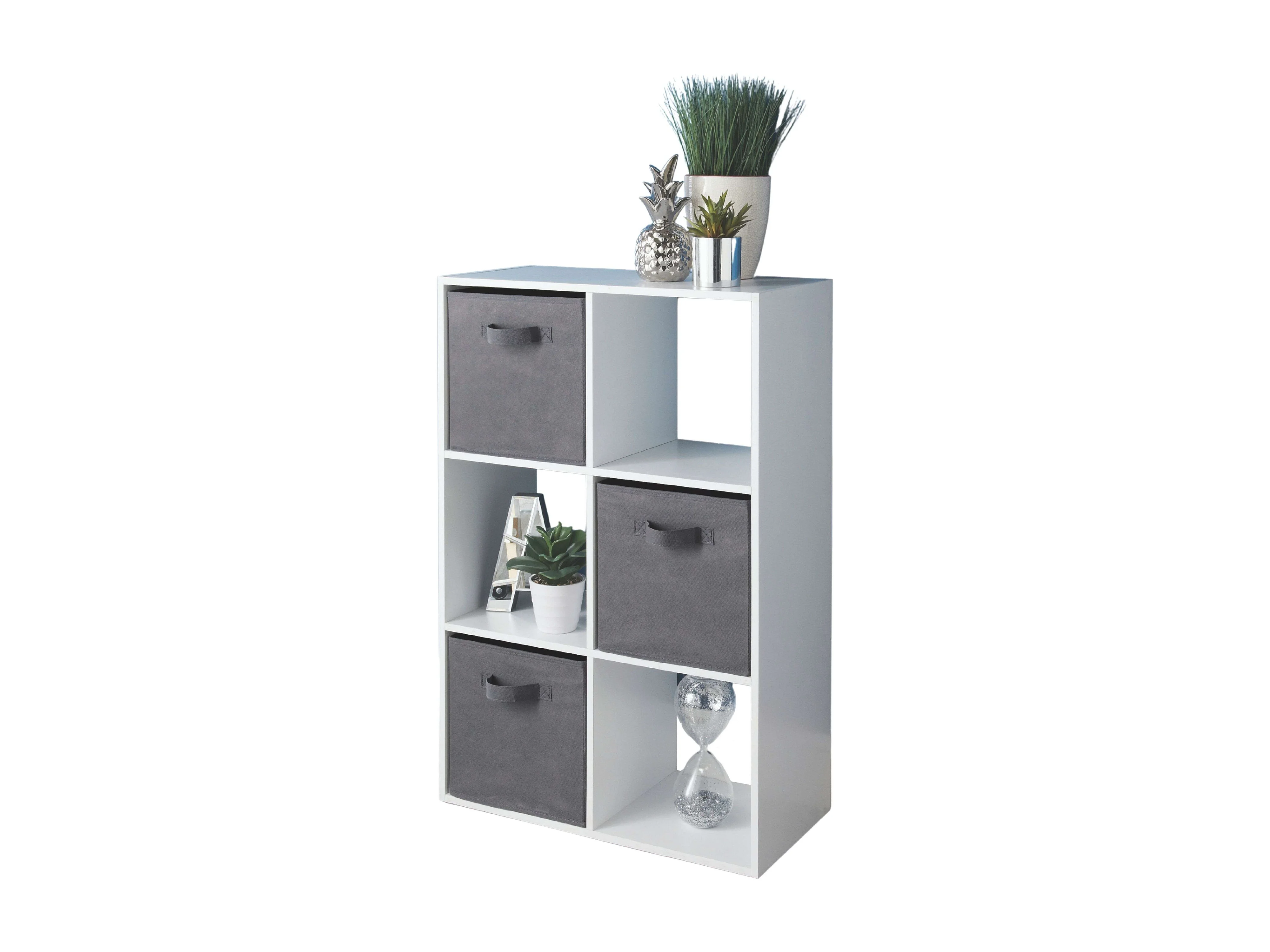 Estante baixa Abril para sala de estar com 3 compartimentos e 3 gavetas, em tecido melamínico, 60x89x28 cm