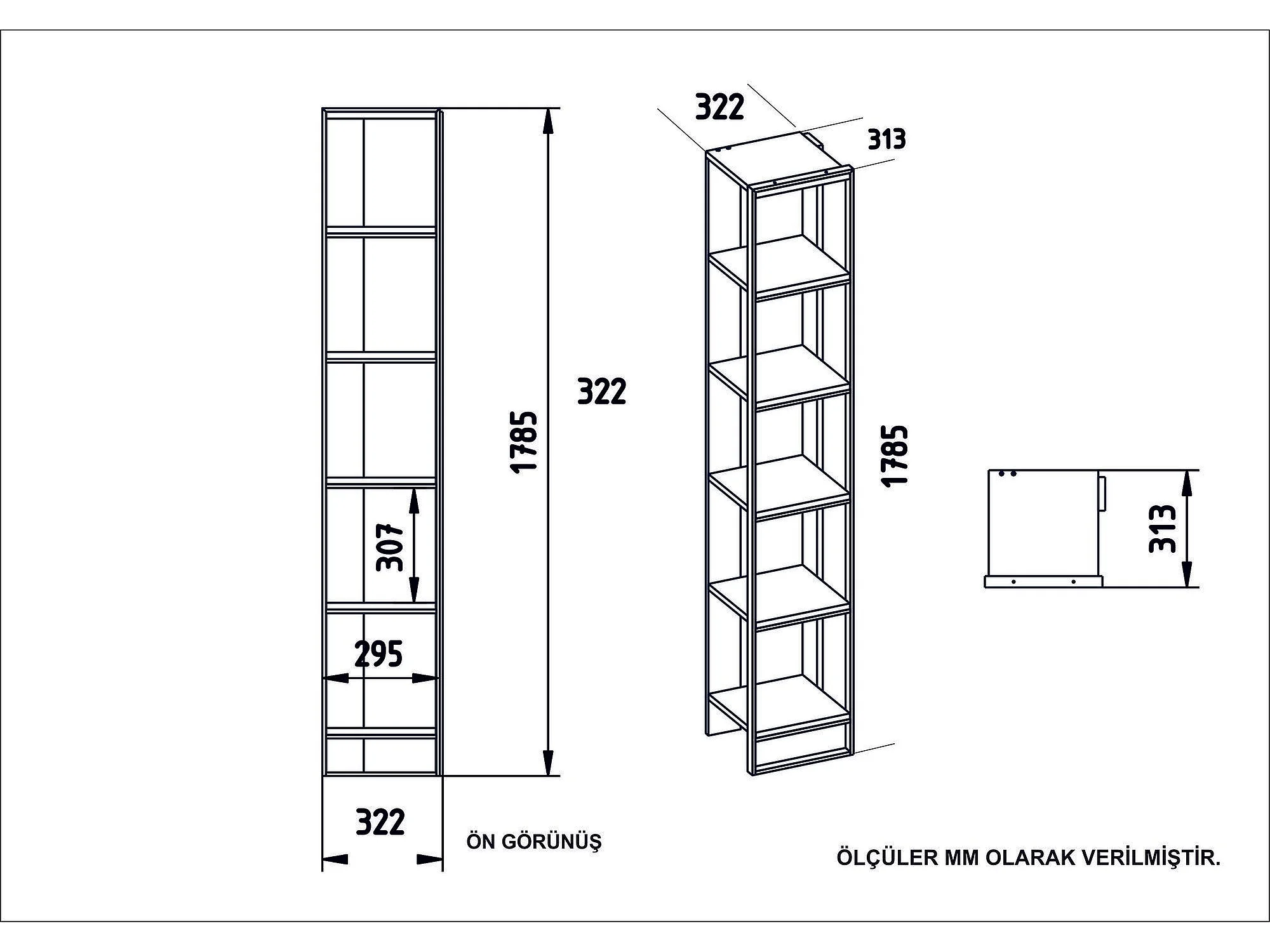 Estante Barroca Elegante, Dourada e Preta, 32,2 x 178,5 x 31,3 cm | Painel de Partículas 100% Revestido com Melamina, 18 mm de Espessura | S