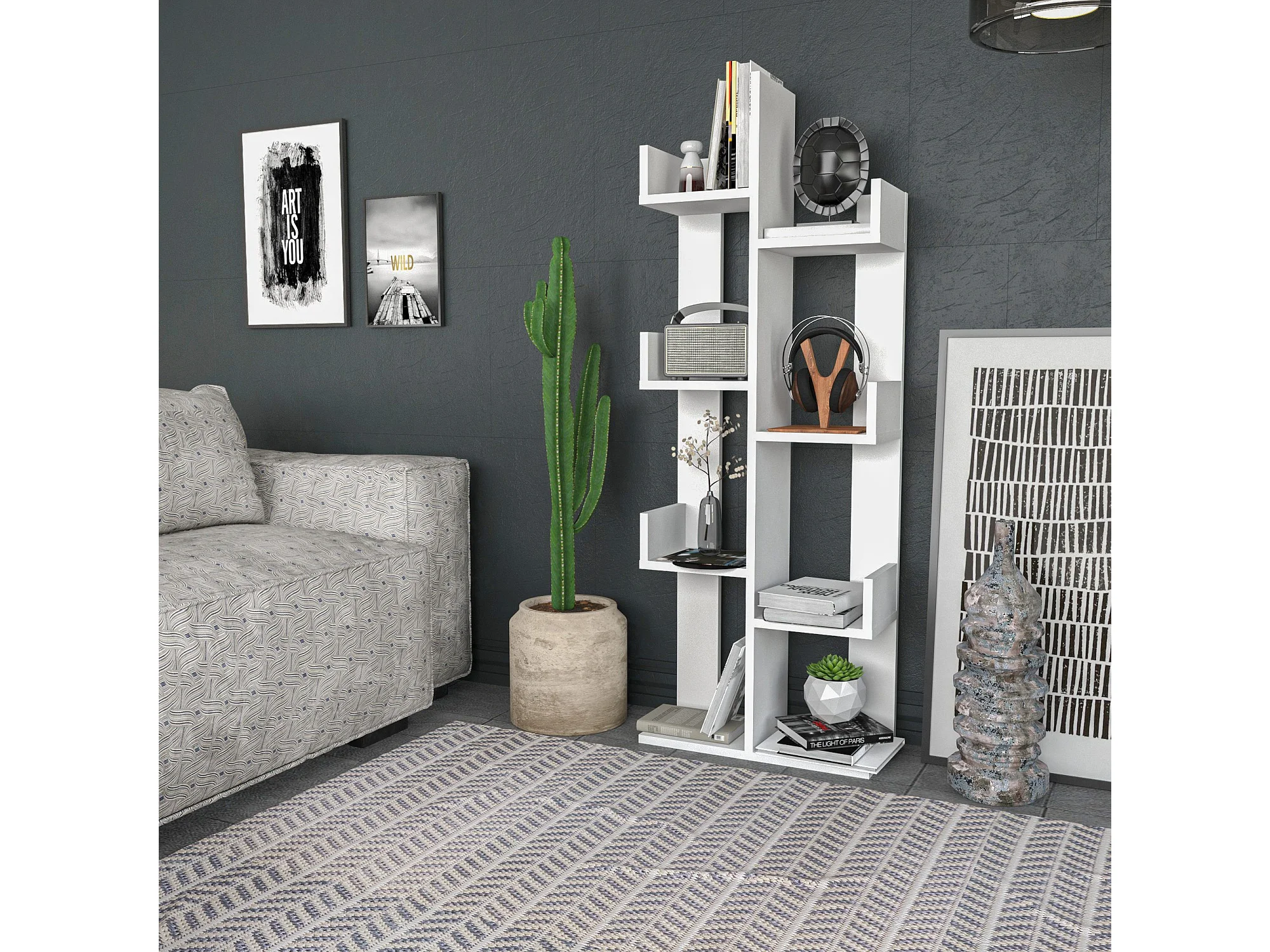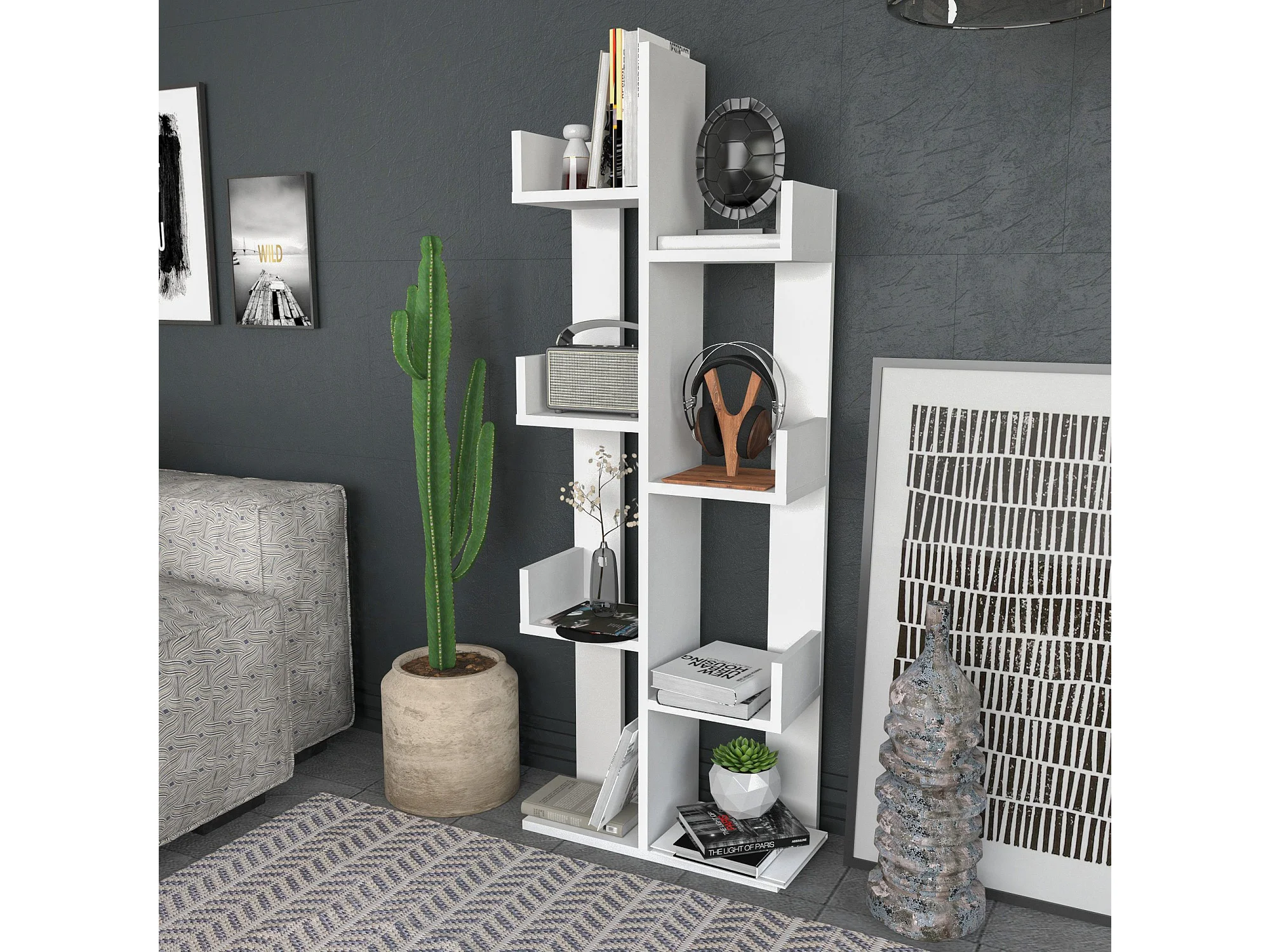 Estante moderna – 124,6 cm x 170 cm x 24,2 cm – Branca – Painel de partículas revestido de melamina