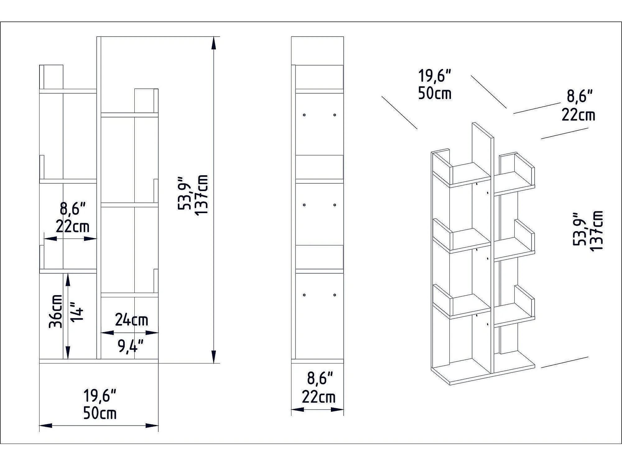 Estante branca moderna, 137 cm de altura, 50 cm de largura, 22 cm de profundidade | Painel de partículas 100% revestido de melamina, 18 mm d