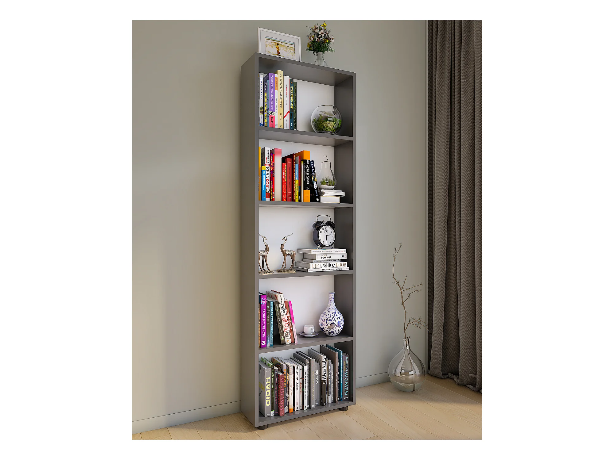 VCM Wood Room Divider Stand Shelf Bookshelf Decoração Livros Stand Shelf Palusa M (Anthracite)