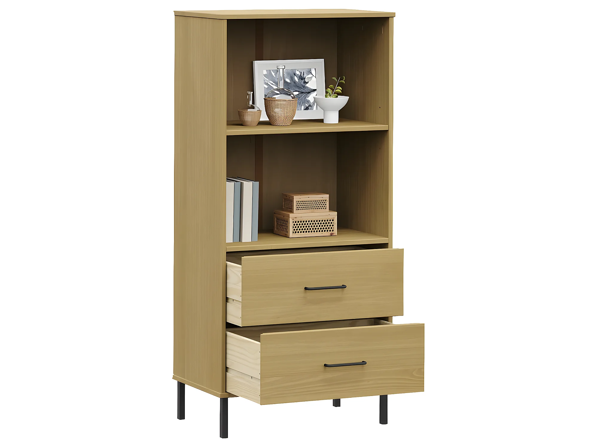 Estante c/ 2 gavetas 60x35x128,5cm madeira maciça OSLO castanho PT278000