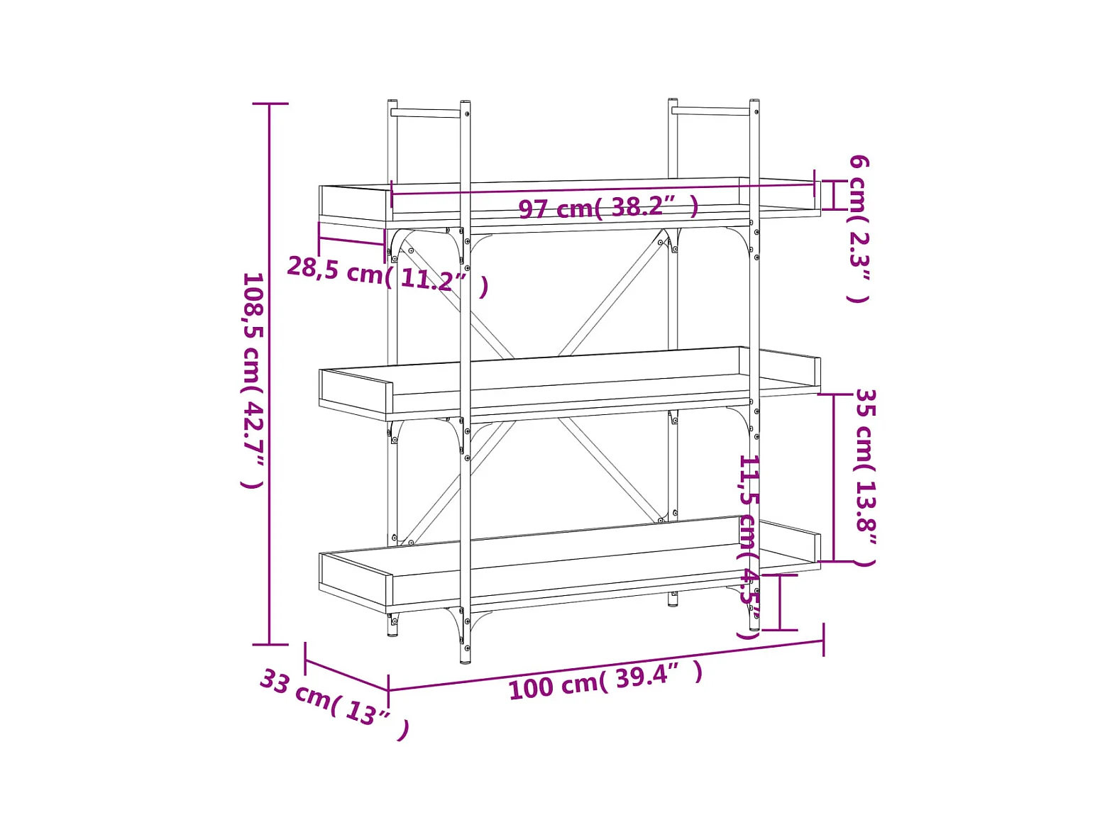 Estante c/ 3 prateleiras 100x33x108,5cm derivados madeira preto
