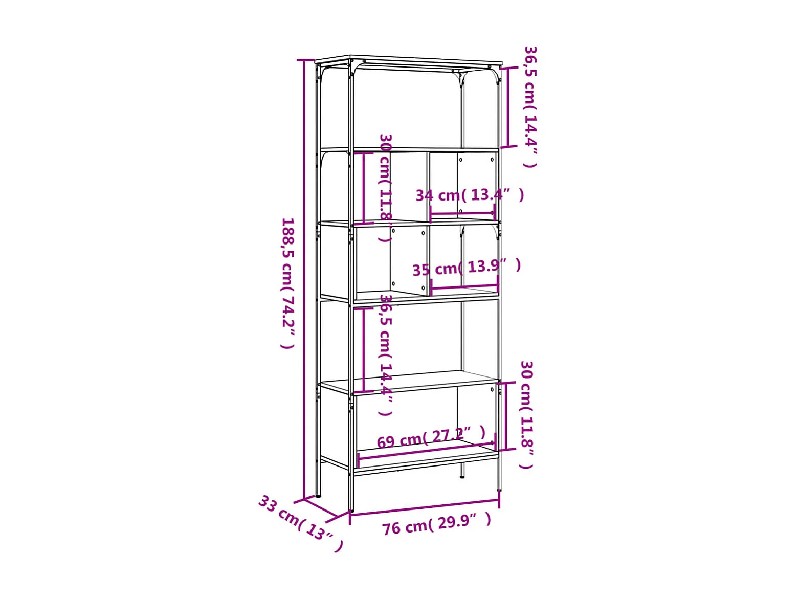 Estante c/ 5 prateleiras 76x33x188,5 cm derivados madeira preto