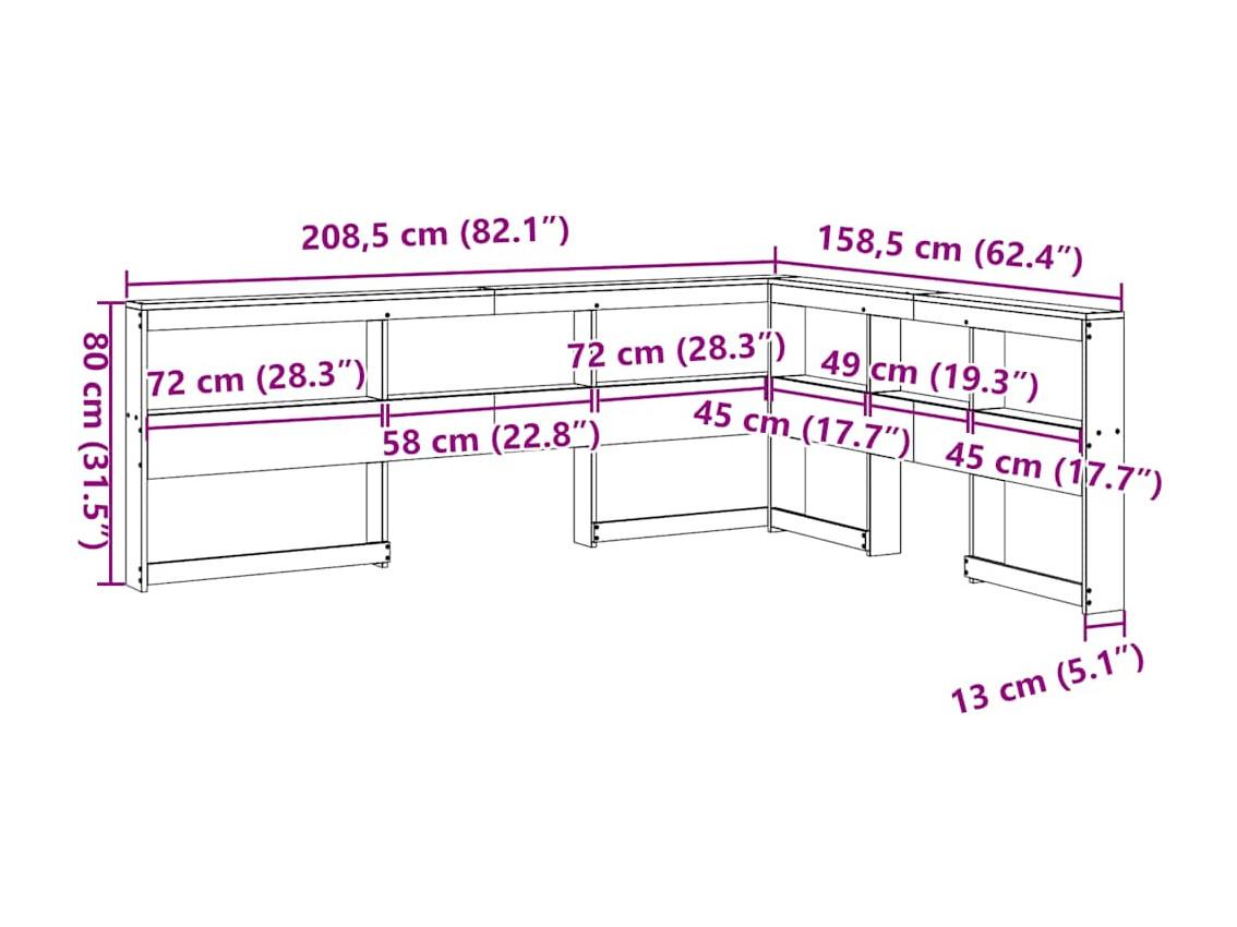 Estante cabeceira forma de L 140 cm pinho maciço castanho-mel