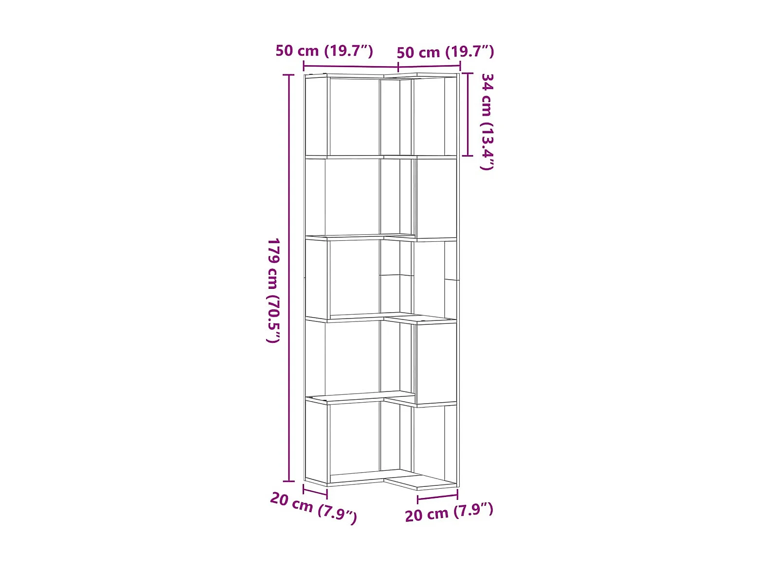 Estante canto 5 prateleiras derivados madeira carvalho fumado