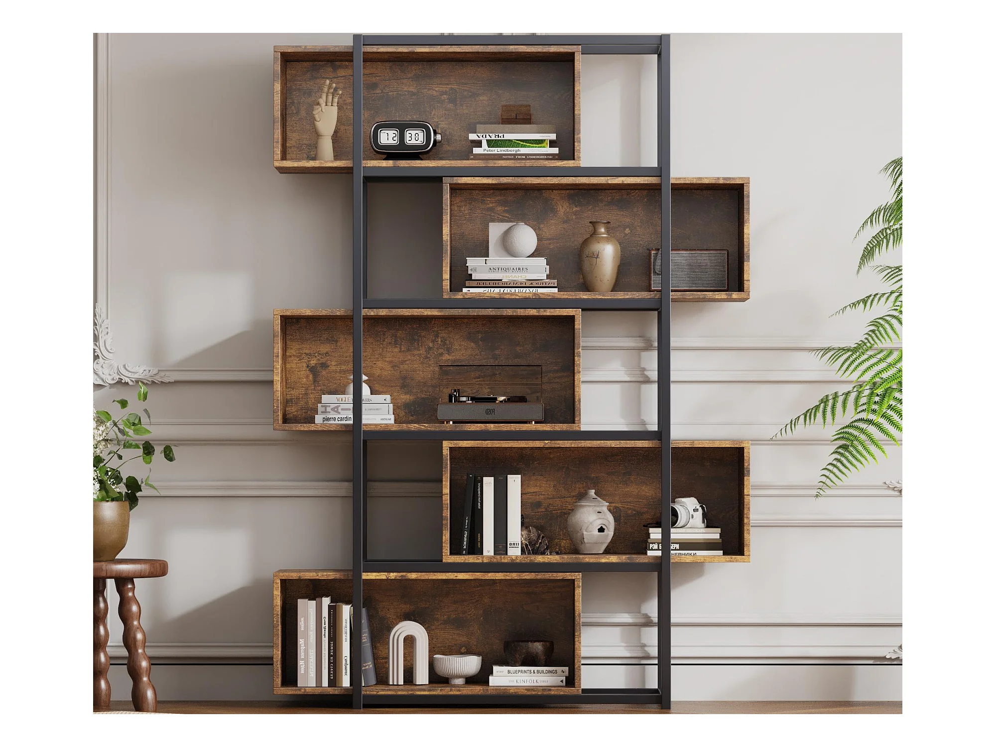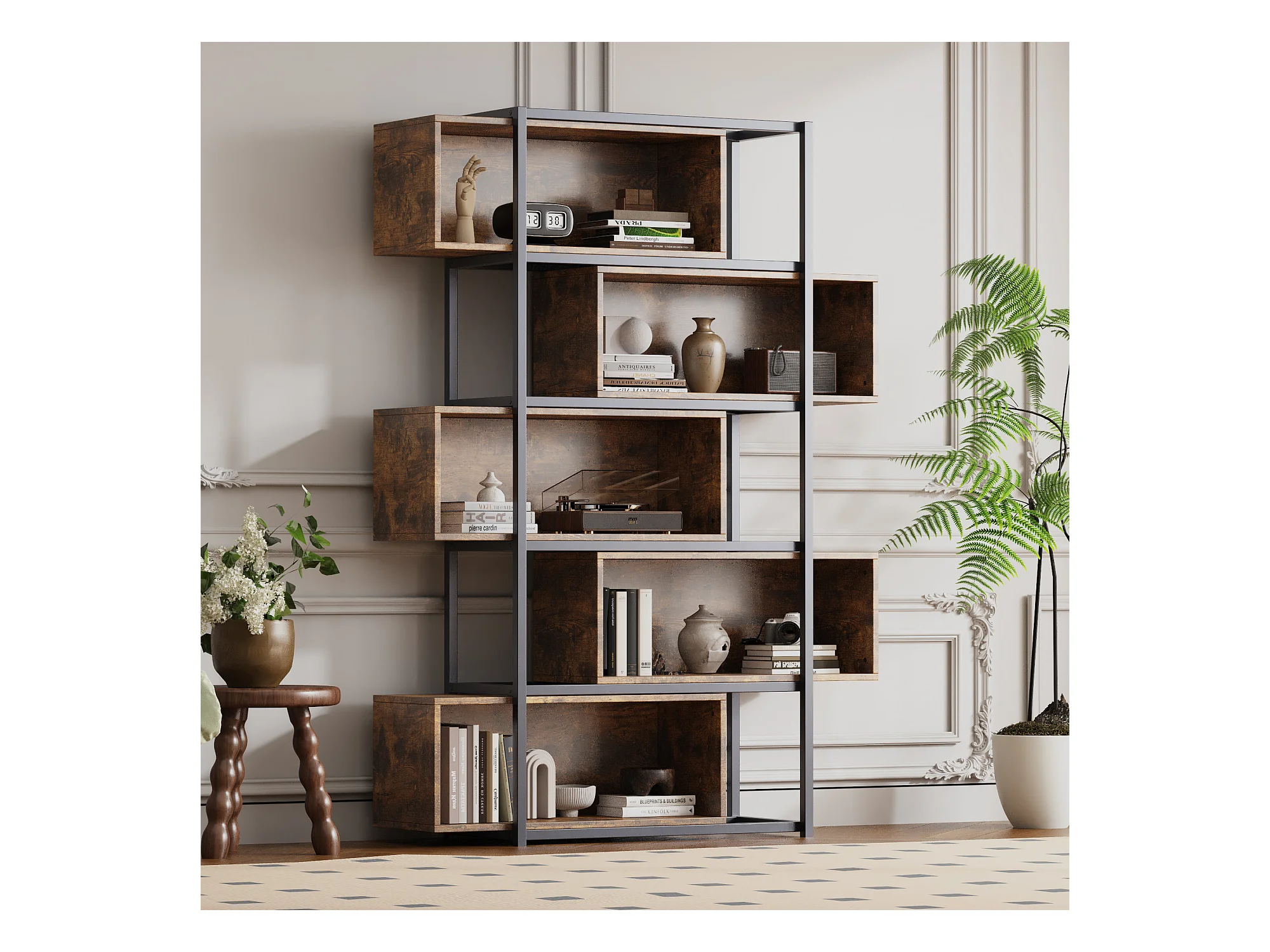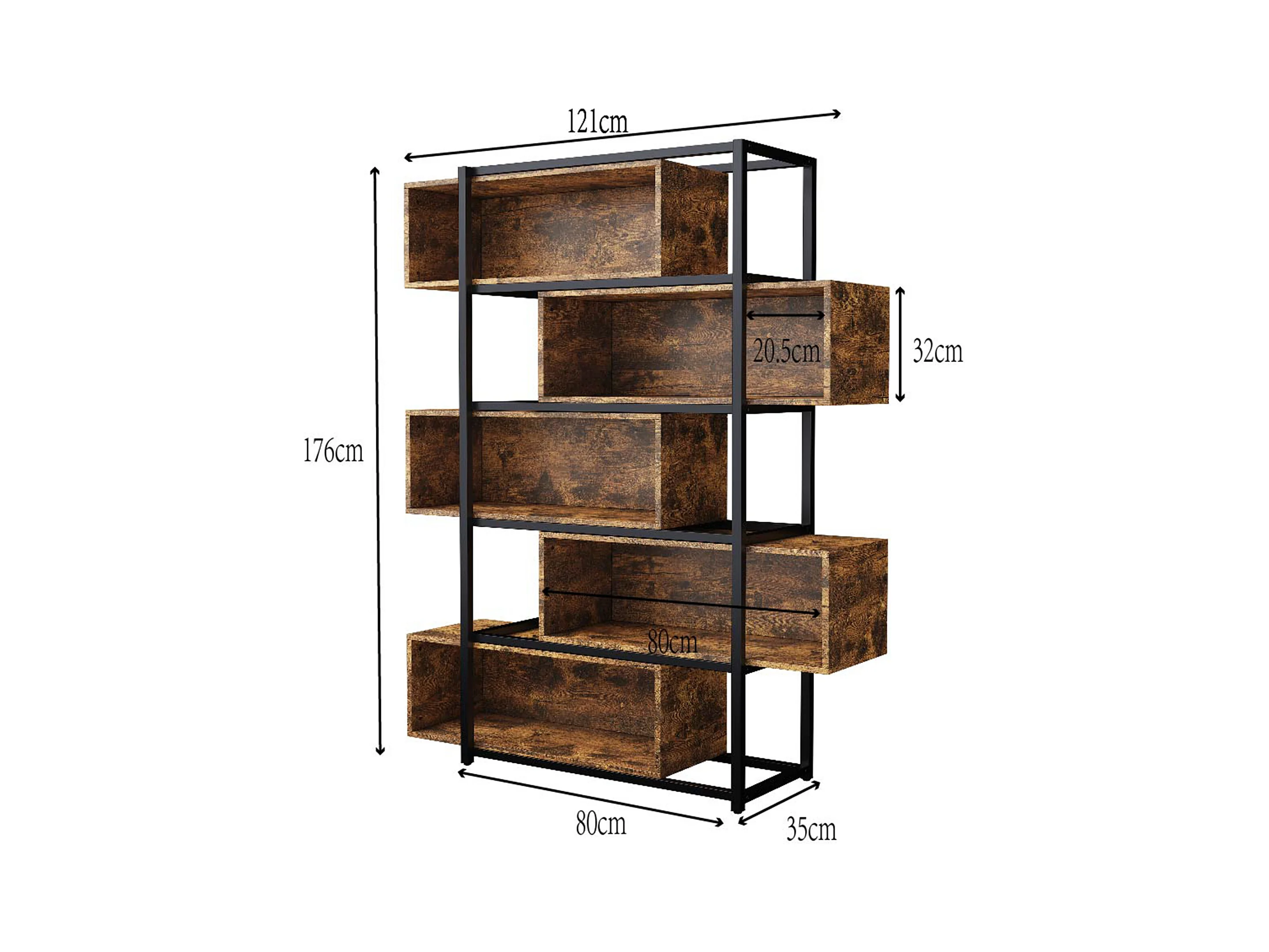 Estante de 5 andares com prateleiras - 121 x 35 x 176 cm - Castanho