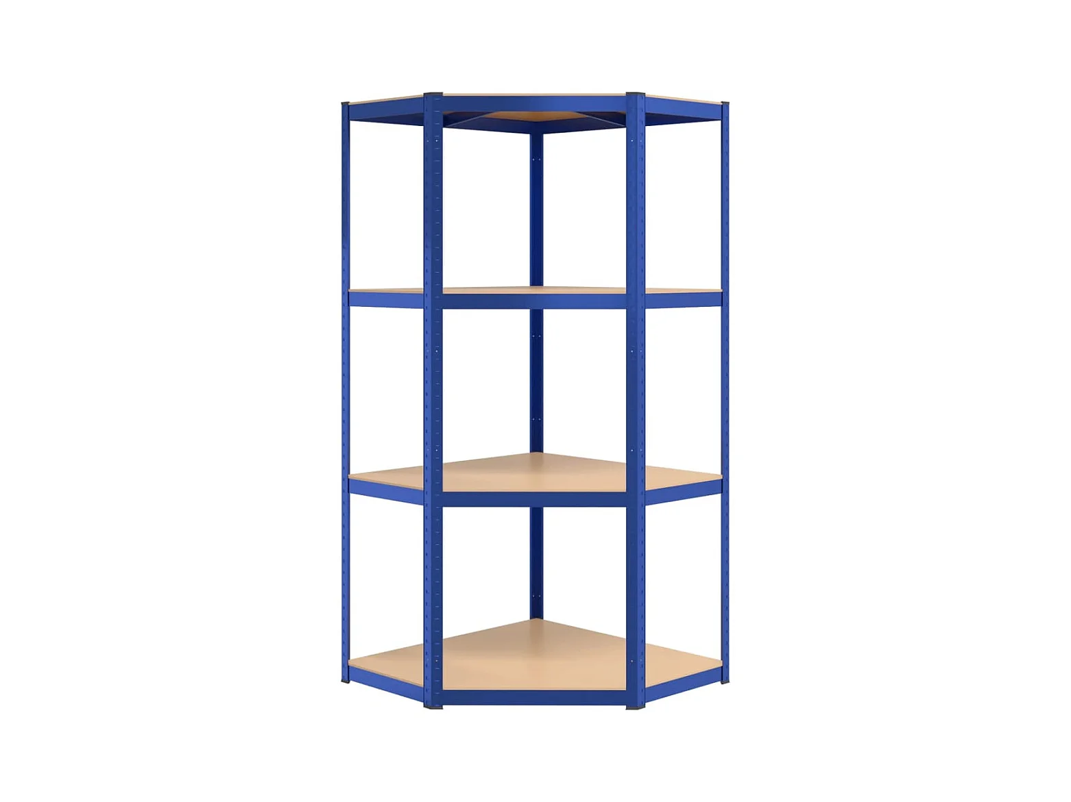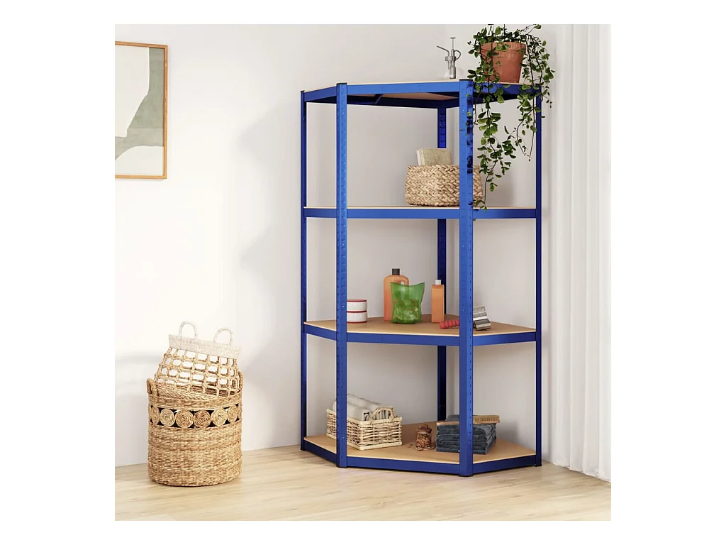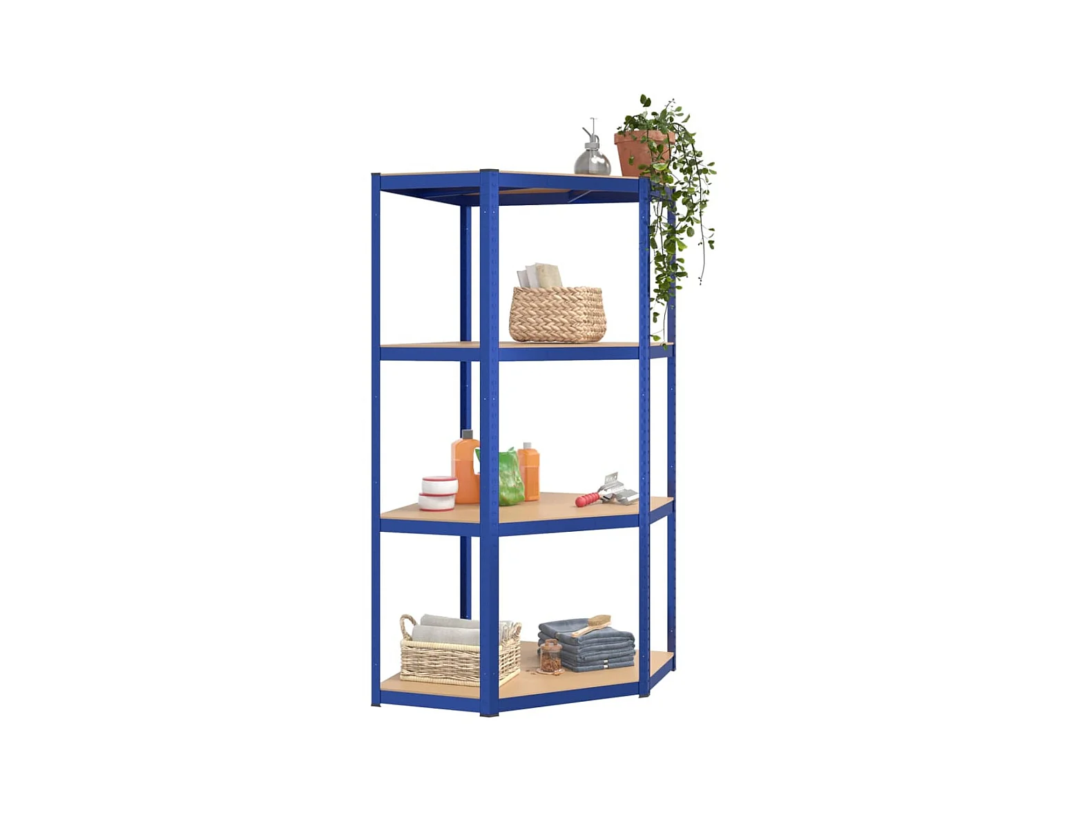 Estante de canto 4 prateleiras derivados de madeira e aço azul PT233896