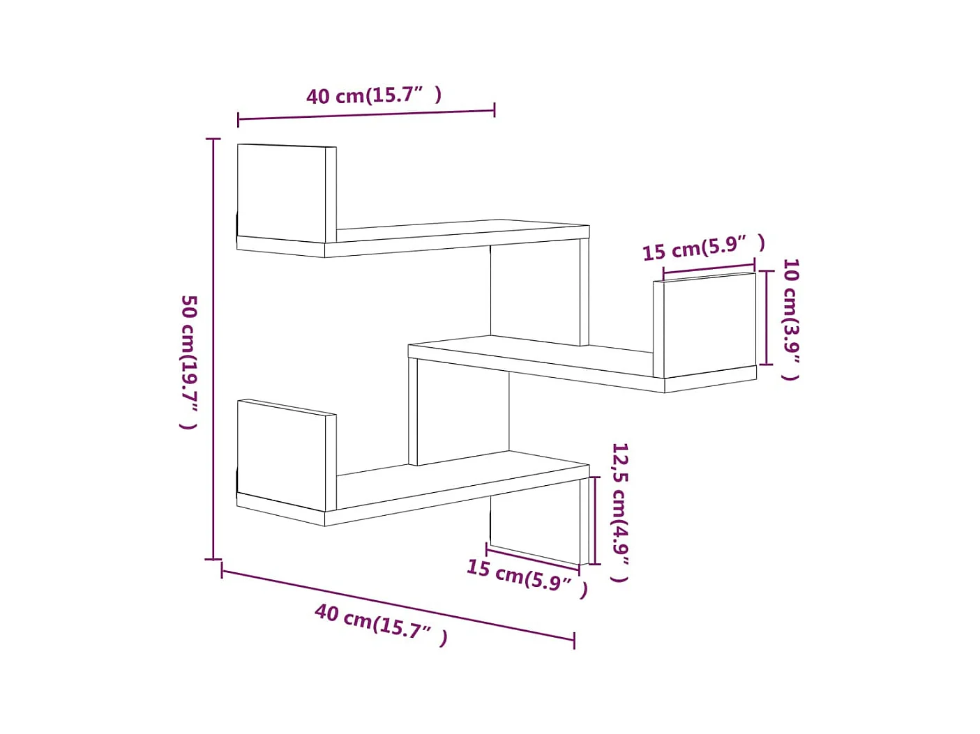 Estante de canto 40x40x50 cm derivados madeira carvalho fumado