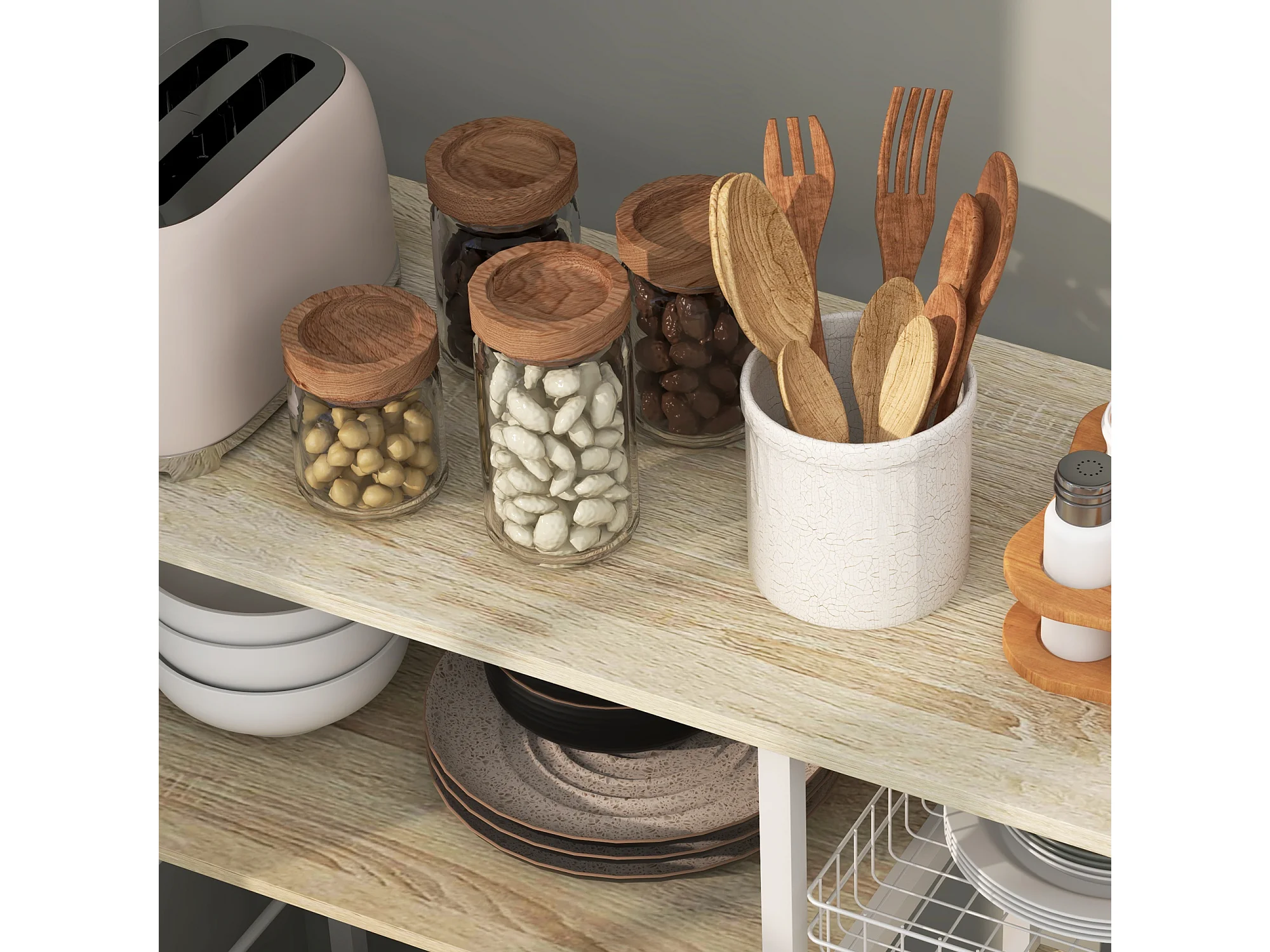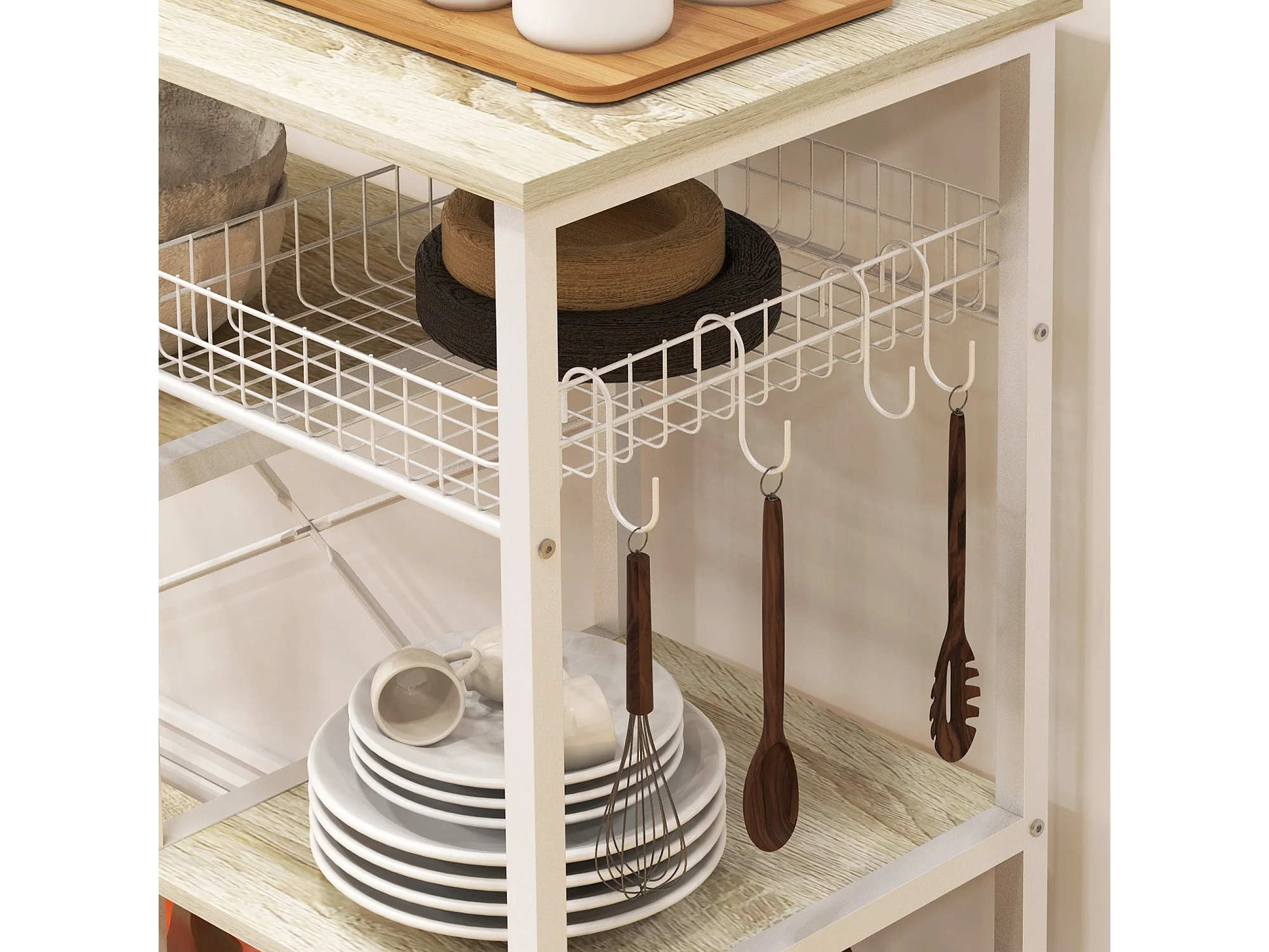 Estante de Cozinha Moderna HOMCOM com 1 Cesto, 4 Ganchos e 6 Pés Ajustáveis - Carvalho e Branco