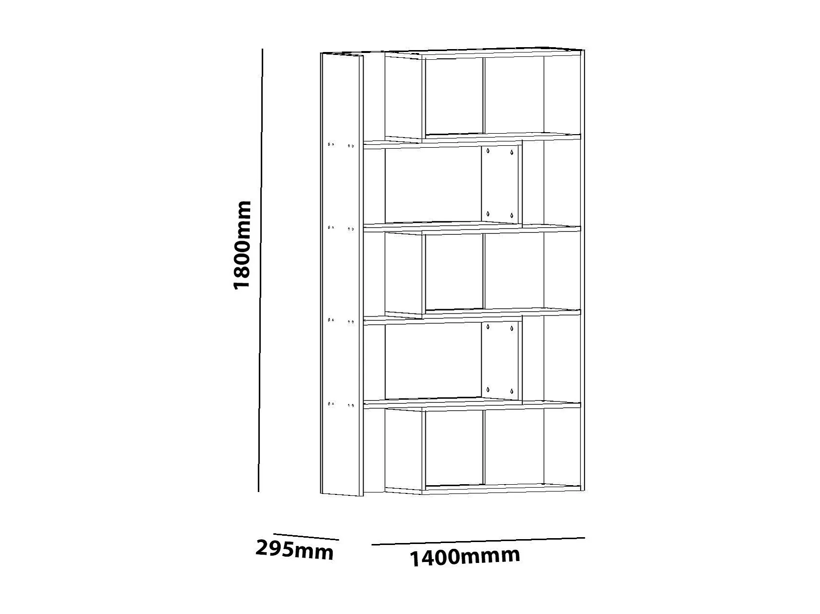 Estante branca moderna, 140 cm x 29,6 cm x 177,4 cm | Painel de partículas 100% revestido de melamina, 18 mm de espessura | Armazenamento el