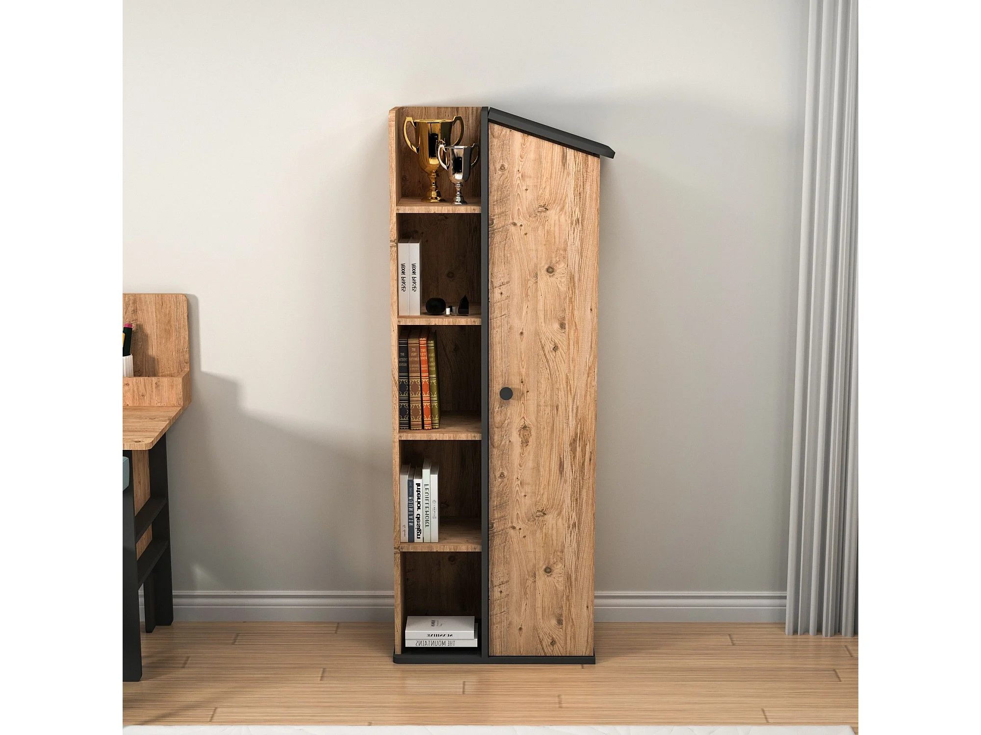 Estante de livros – 60 cm x 161.8 cm x 35.3 cm – Pinho Atlântico e Antracite – Painel de partículas