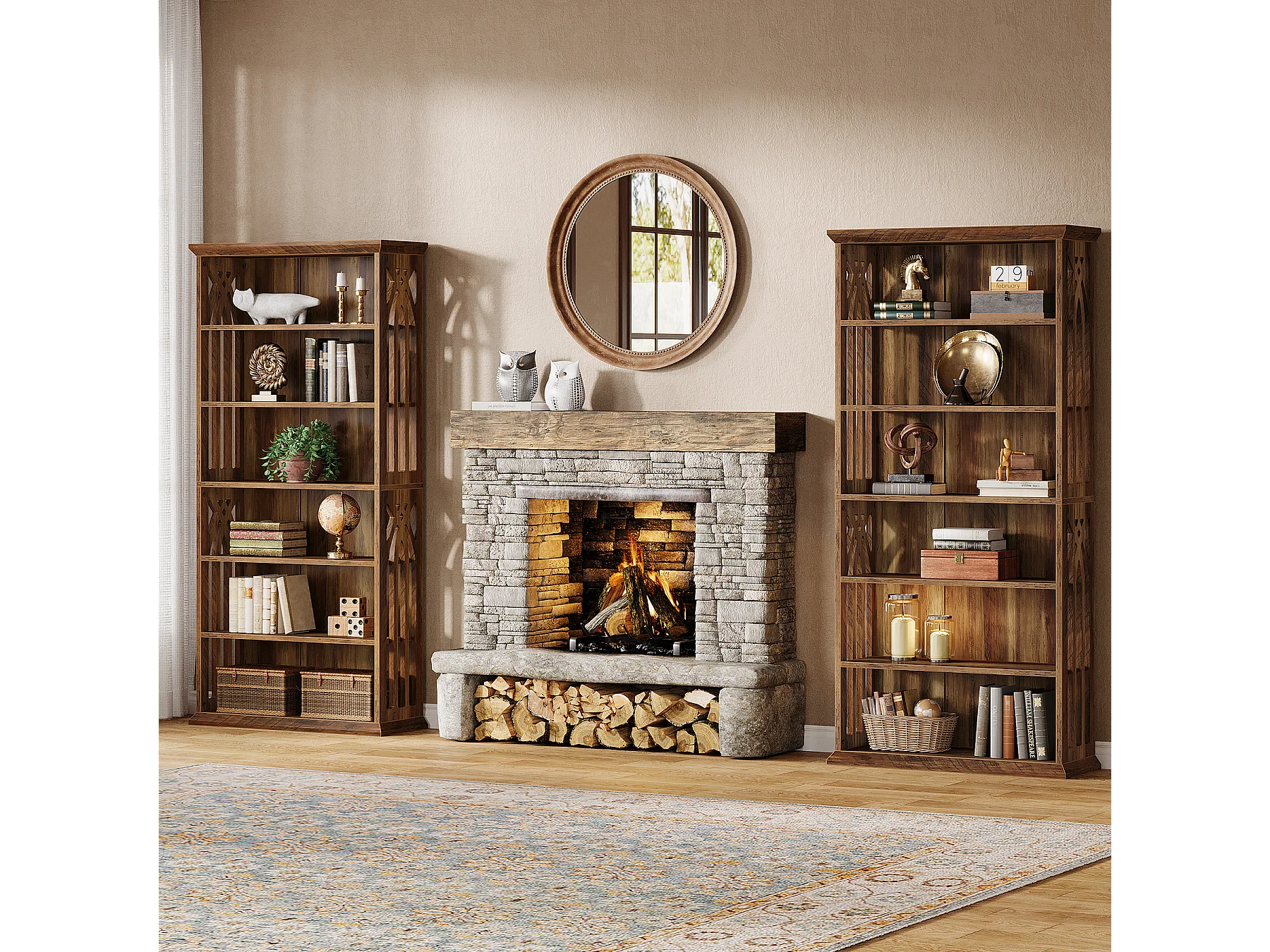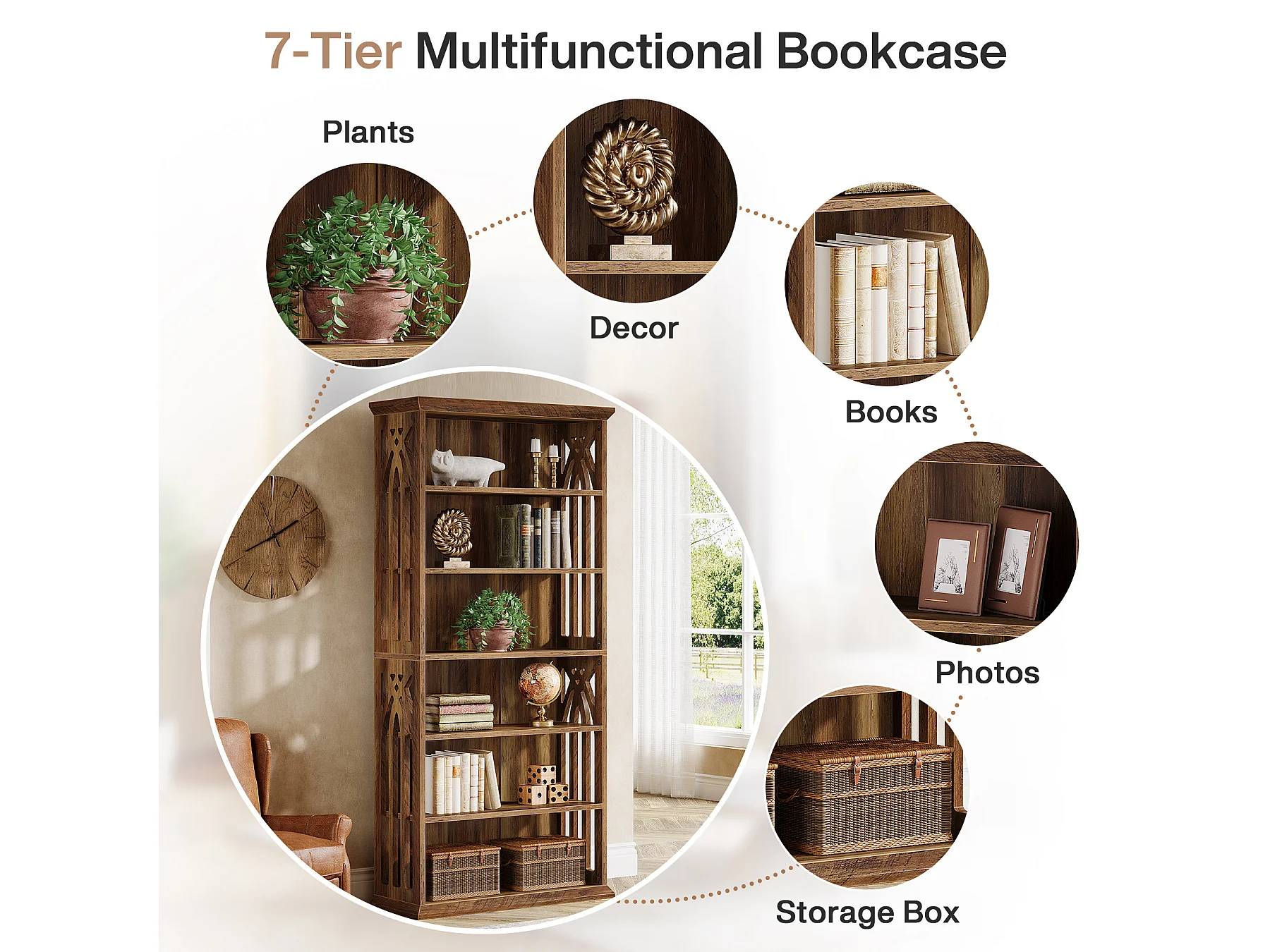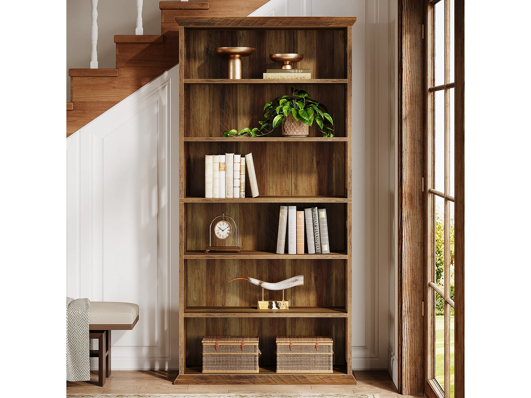 Estante de Livros de 6 Andares, Estantes e Estantes de Livros Rurais de 190cm, Estantes de Madeira com 6 Prateleiras de Exibição e Armazenamento de Pé