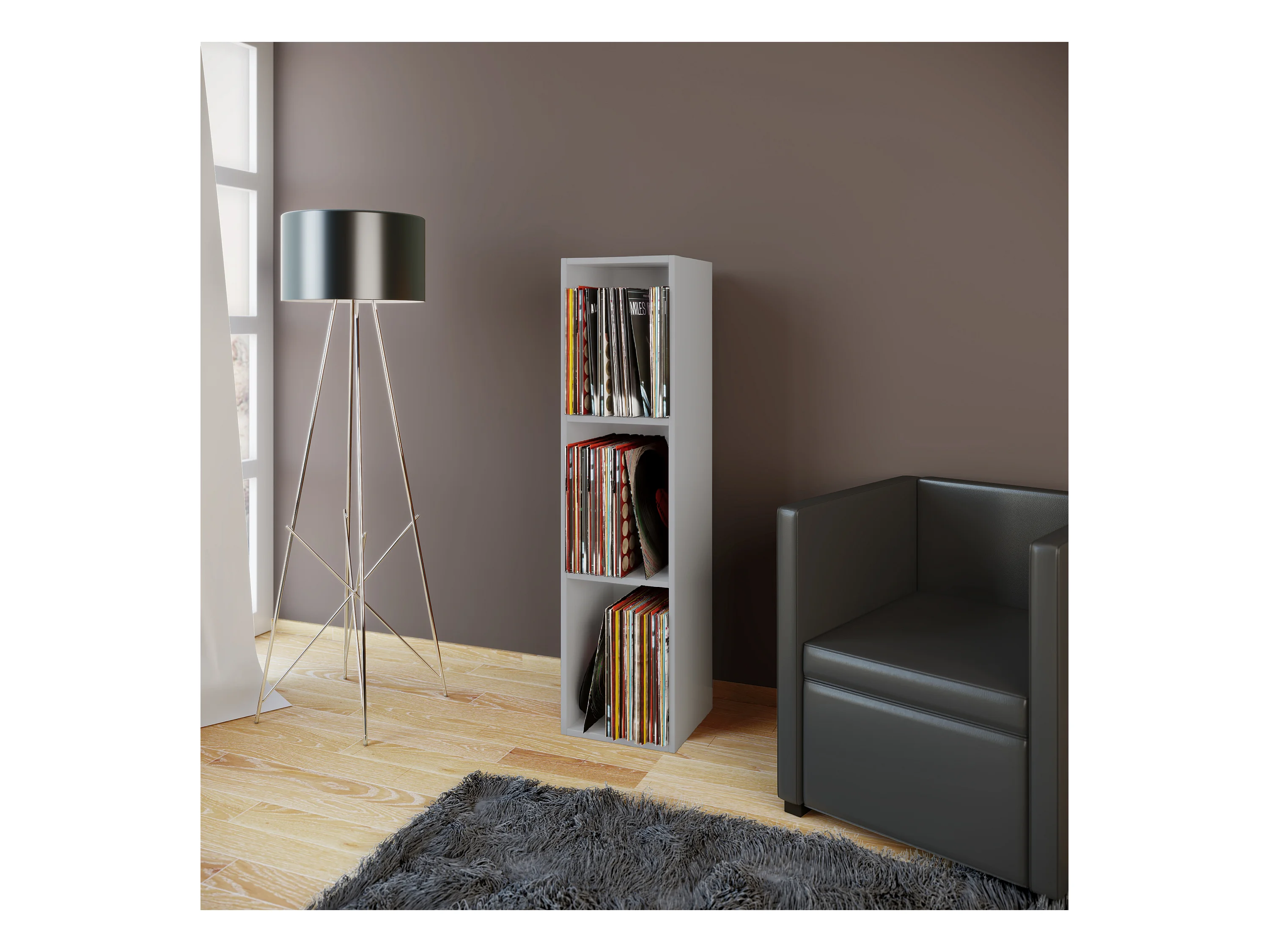 VCM Wood Records Shelf | Stand Shelf com 3 compartimentos para 100 Registros | Dimensões: A. 107 x L. 34 x P. 30 cm - Platto (Cinza)