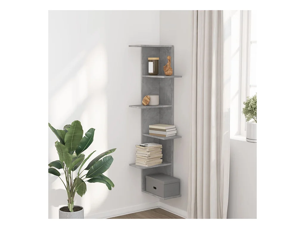 Estante de parede p/ canto derivados madeira cinzento cimento PT699738