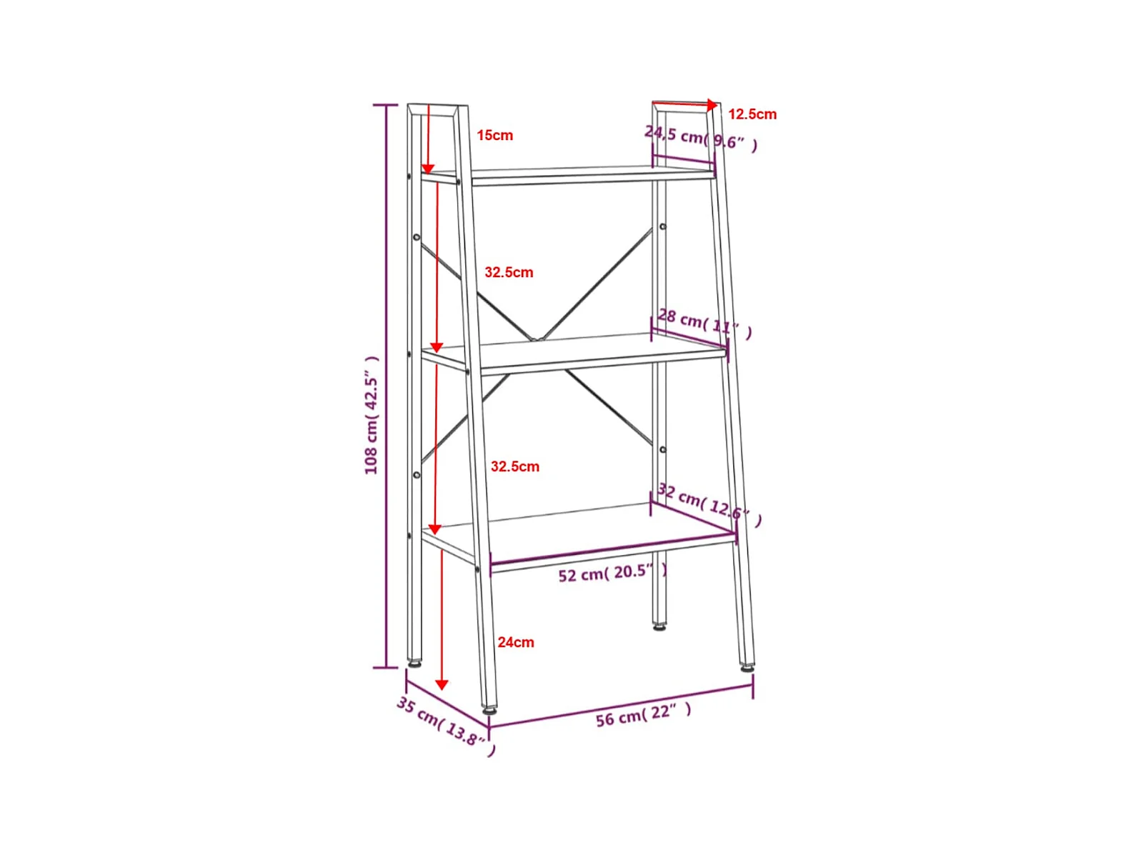 Estante de pé 3 prateleiras 56x35x108 cm castanho-claro e preto