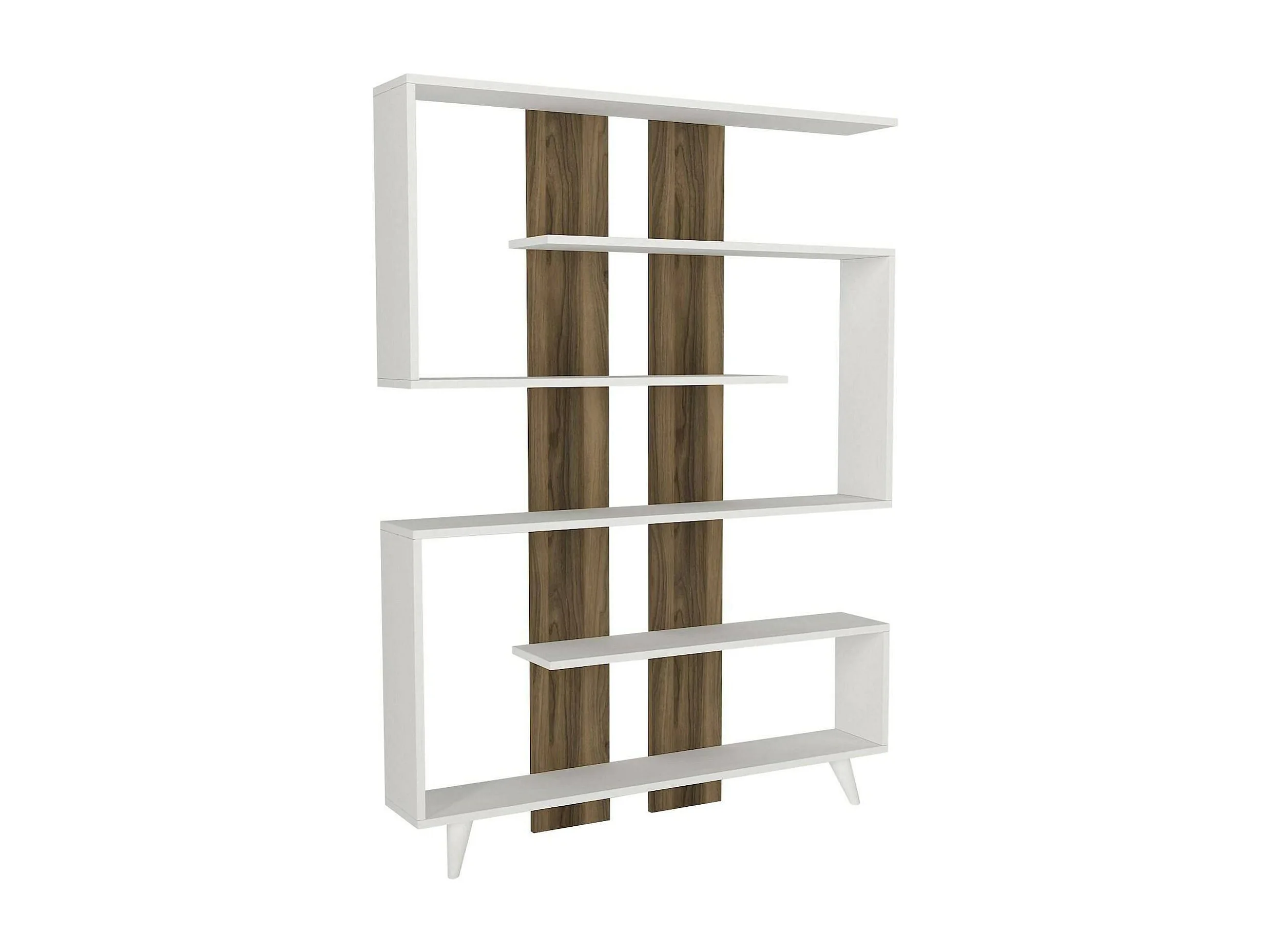 Estante Dmandell, Estante de escritório, Estante de livros, Biblioteca, 120x20h162 cm, Branco e Noz