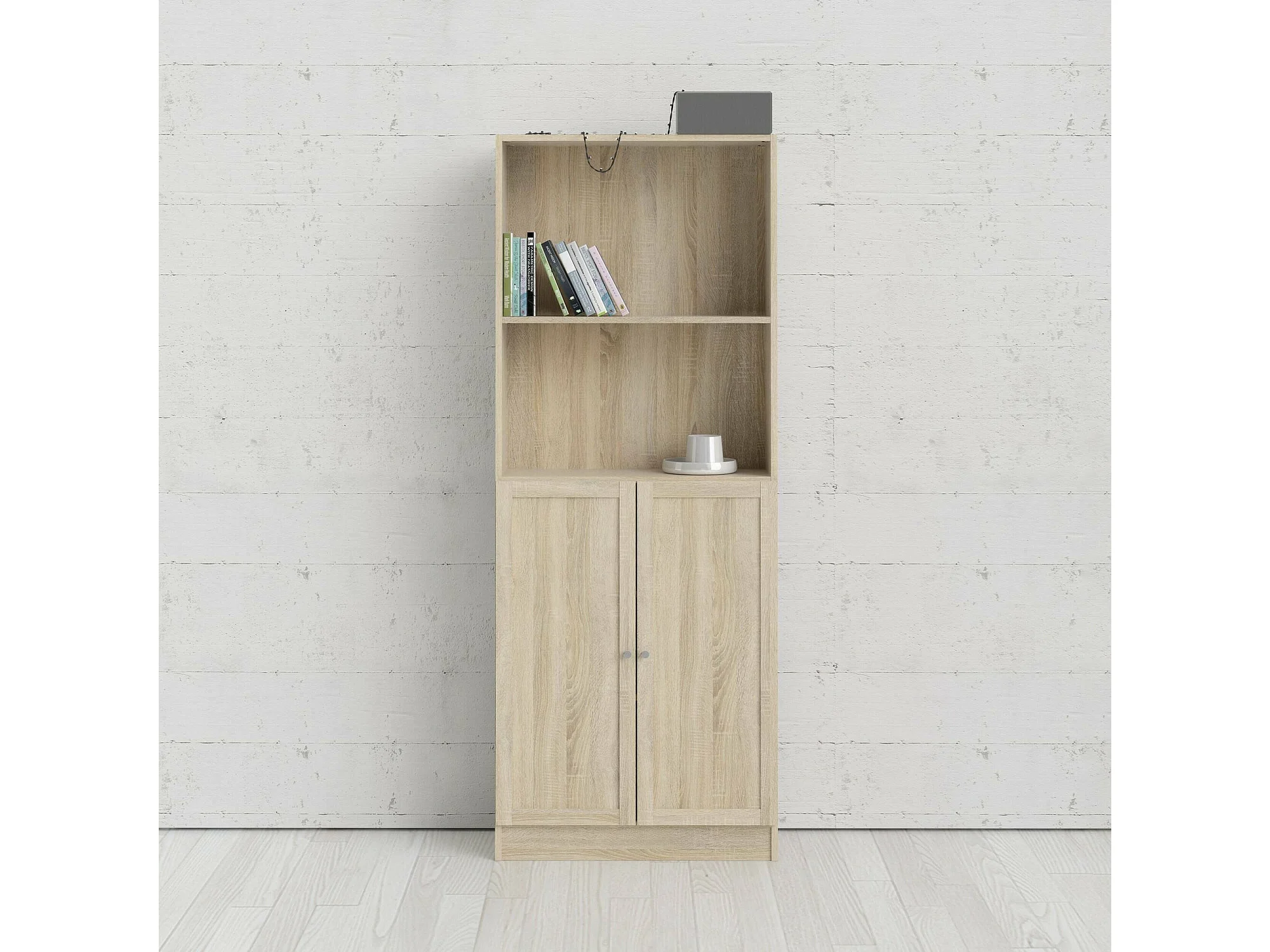 Estante Dsoffrid, Estante de escritório, Estante, Biblioteca, 79x28 h203 cm, Carvalho