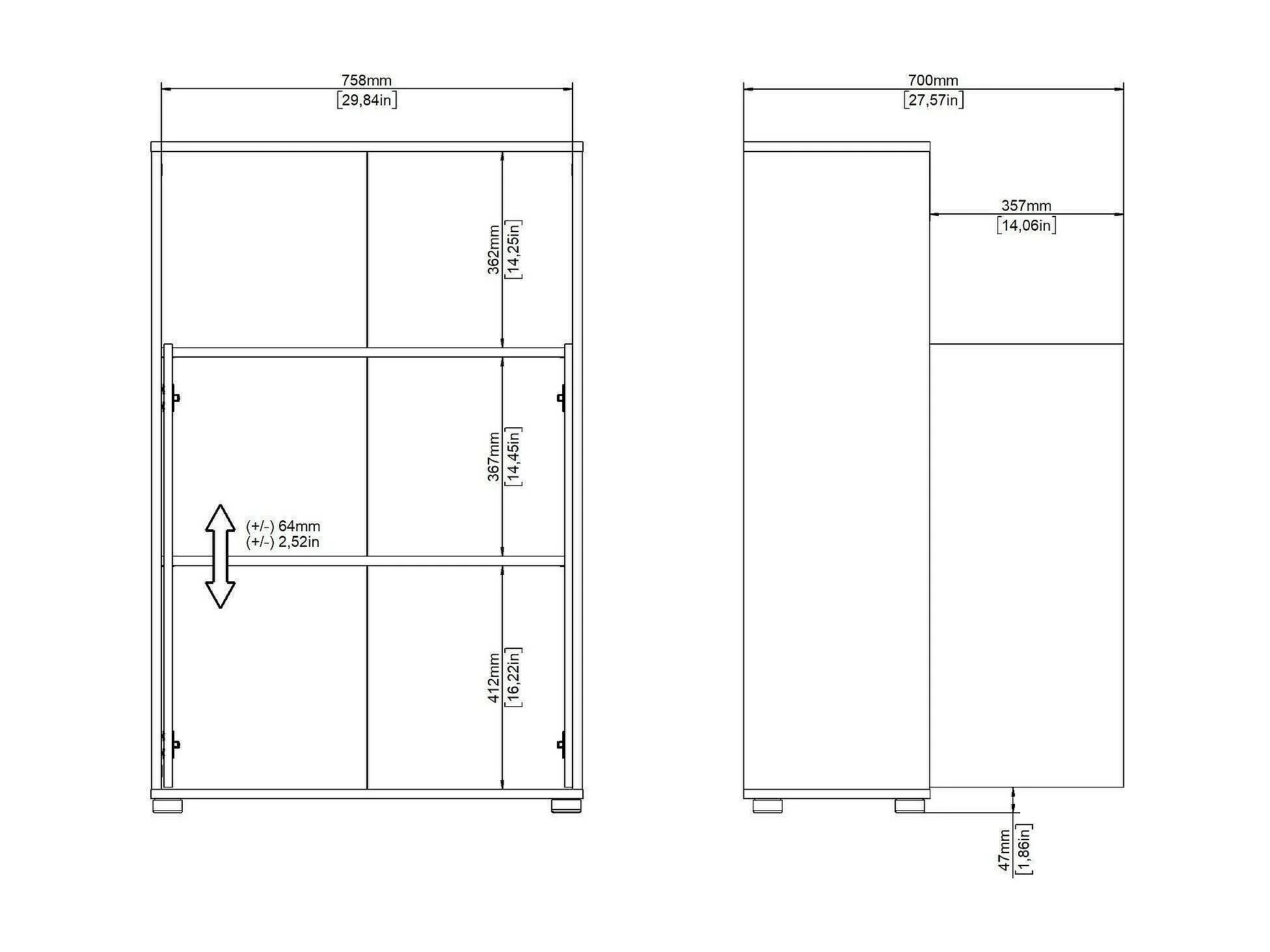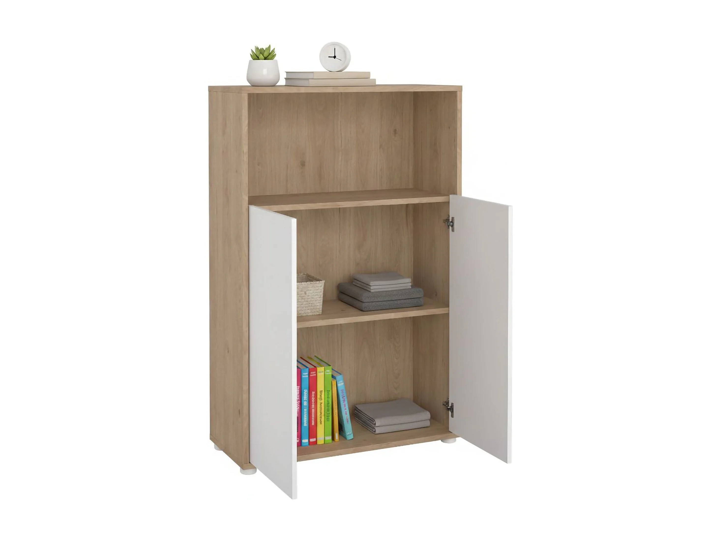Estante Dtass, estante de escritório, estante, biblioteca, 80x34 h124 cm, carvalho e branco