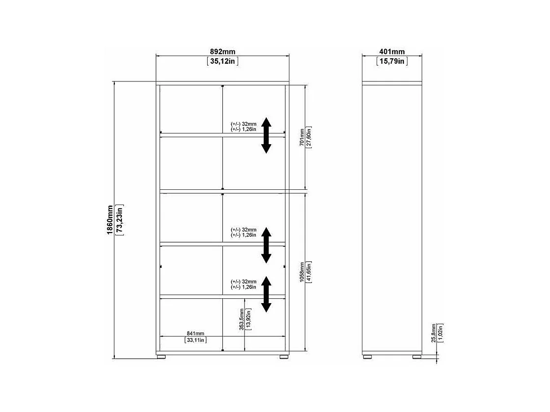 Estante Dsodin, Estante de escritório, Estante, Biblioteca, 79x28 h107 cm, Branco