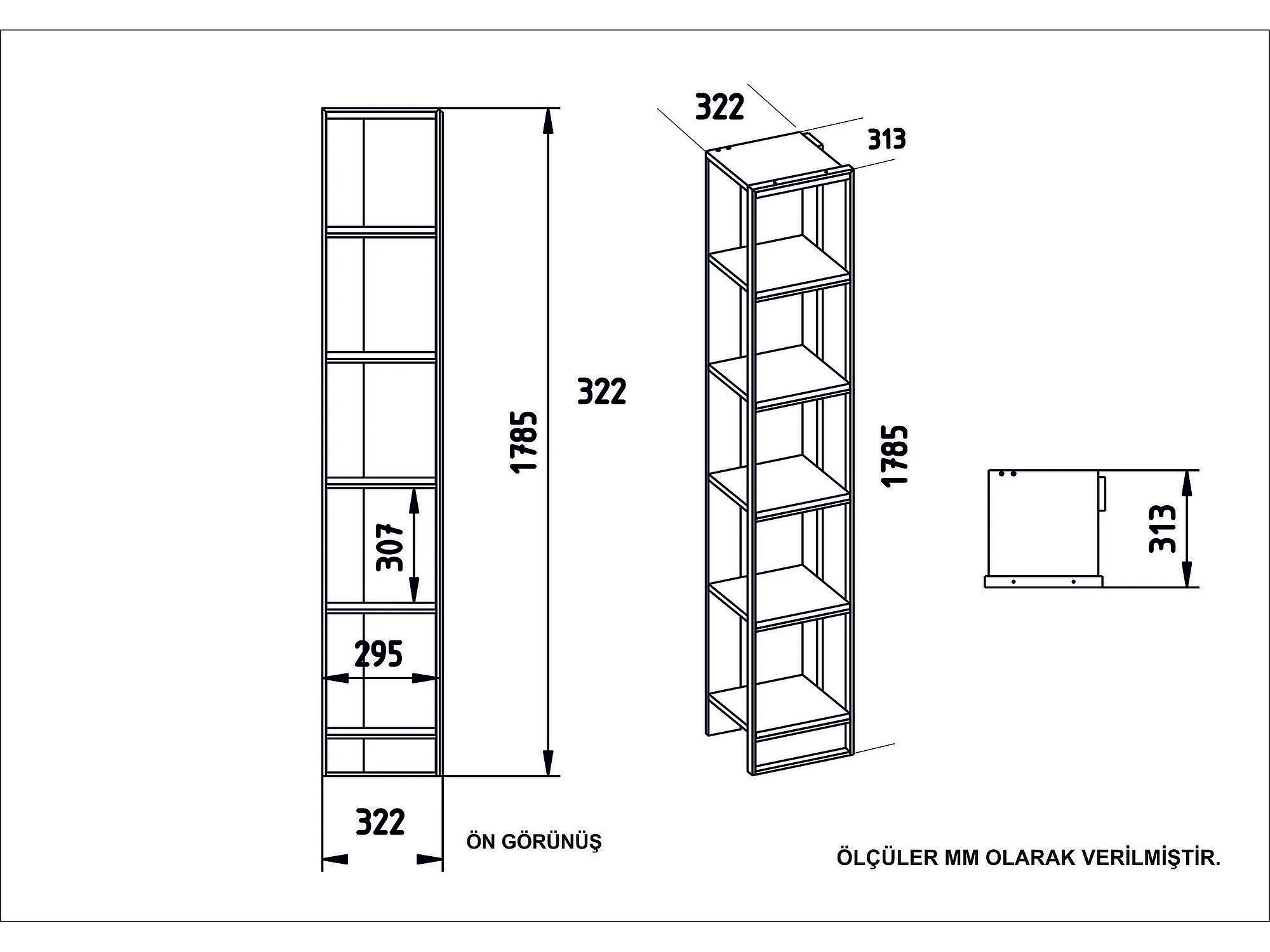 Estante de livros – 58.6cm x 160cm x 30cm – Carvalho Safira e Antracite – Melamina
