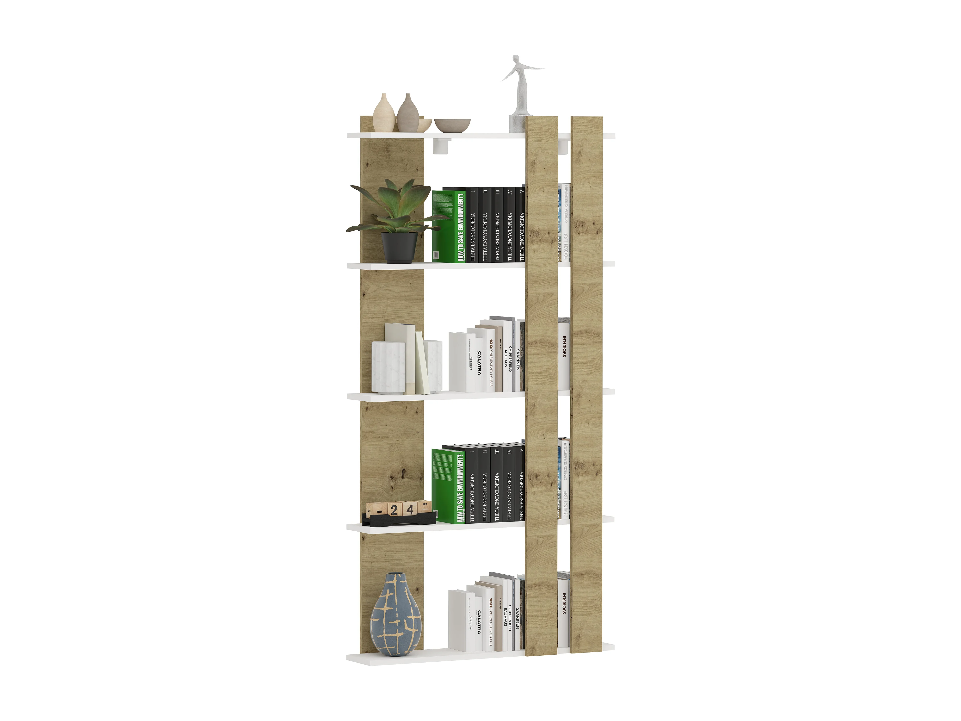 Estante haaus Elmo, 5 prateleiras, Branco/Carvalho Artisan, 80 x 20 x 160 cm