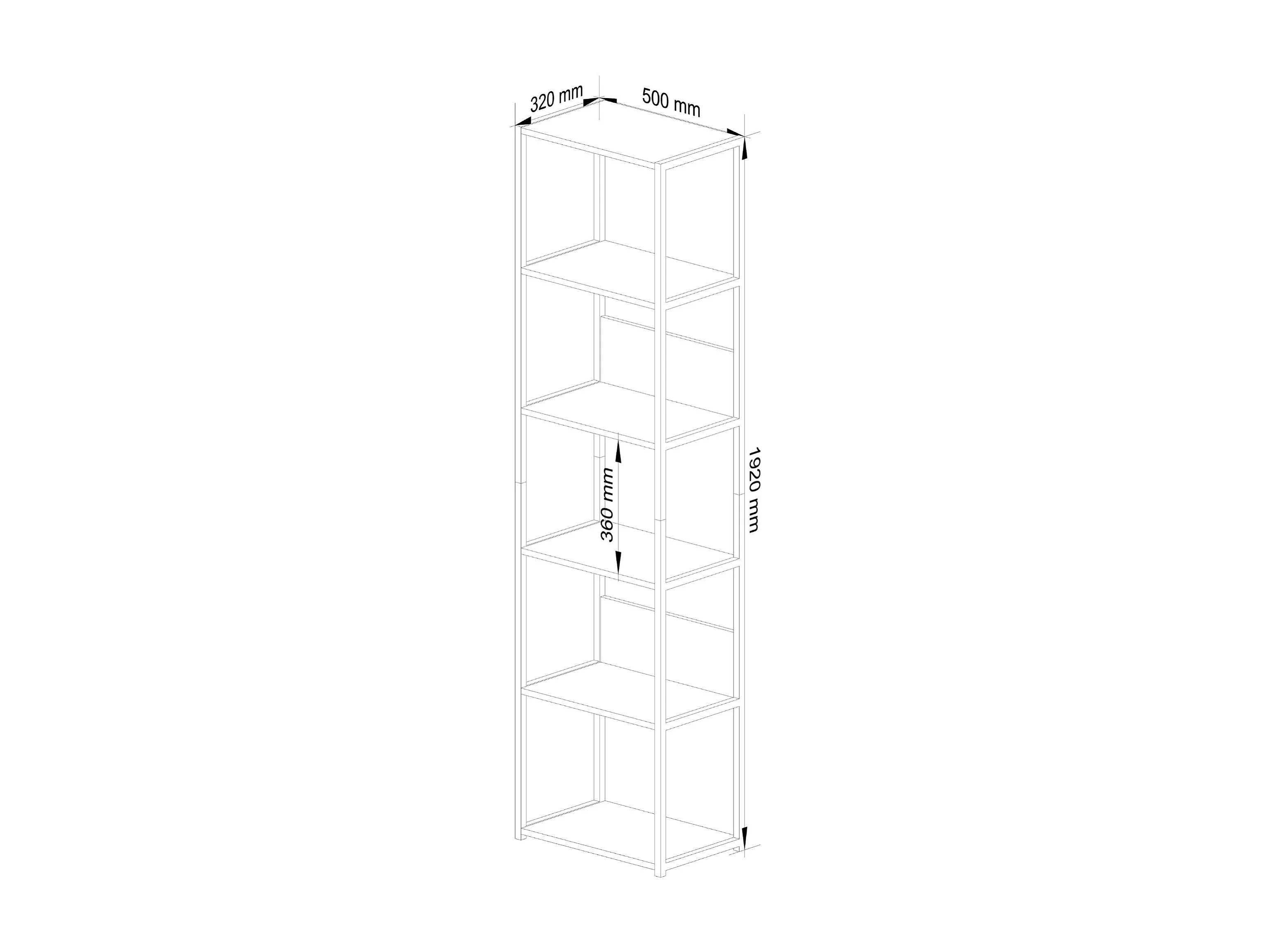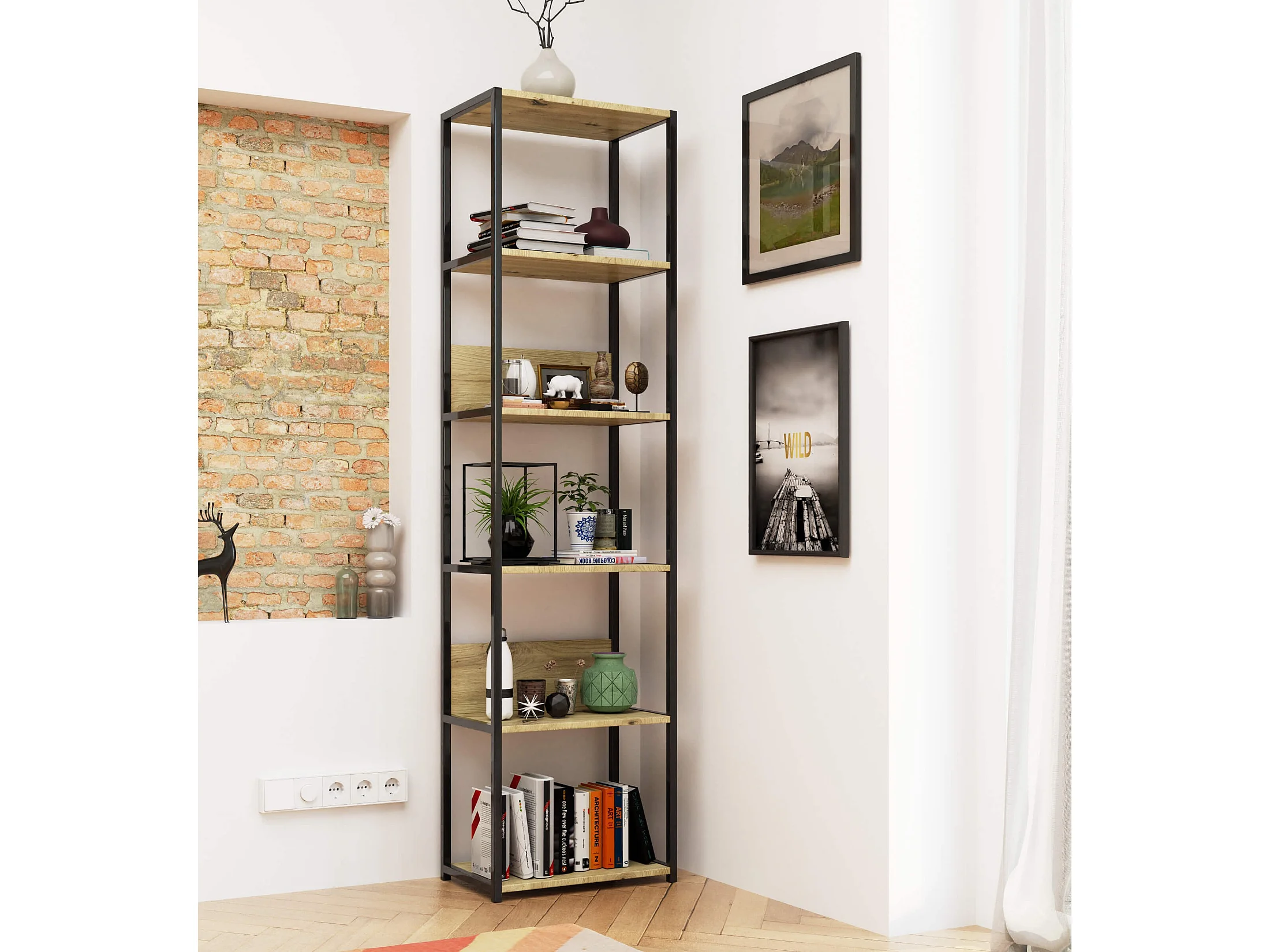 Estante Loft Metálica 50 cm - Preto-Carvalho Artisan - 6 Prateleiras