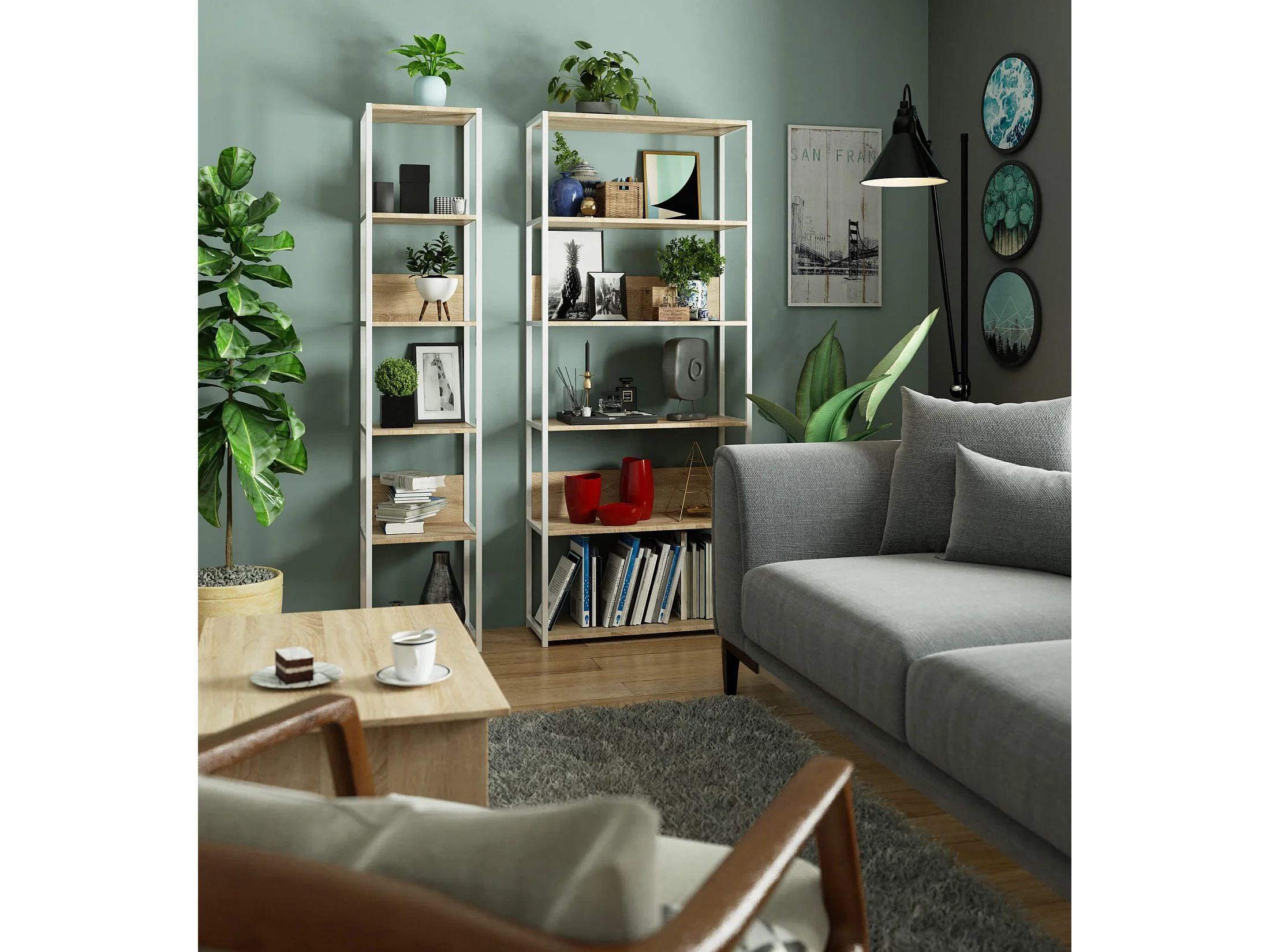 Noa 8 Prateleiras Carvalho Nodi Branco Artik Estilo Nórdico