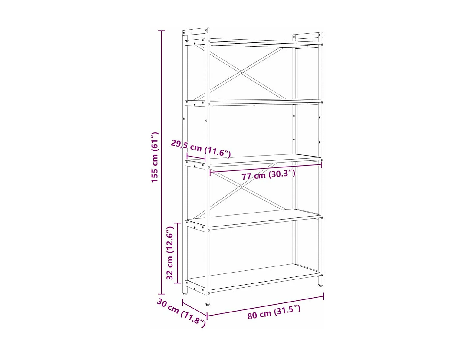 Estante 80x30x145,5cm derivados madeira/ferro carvalho castanho