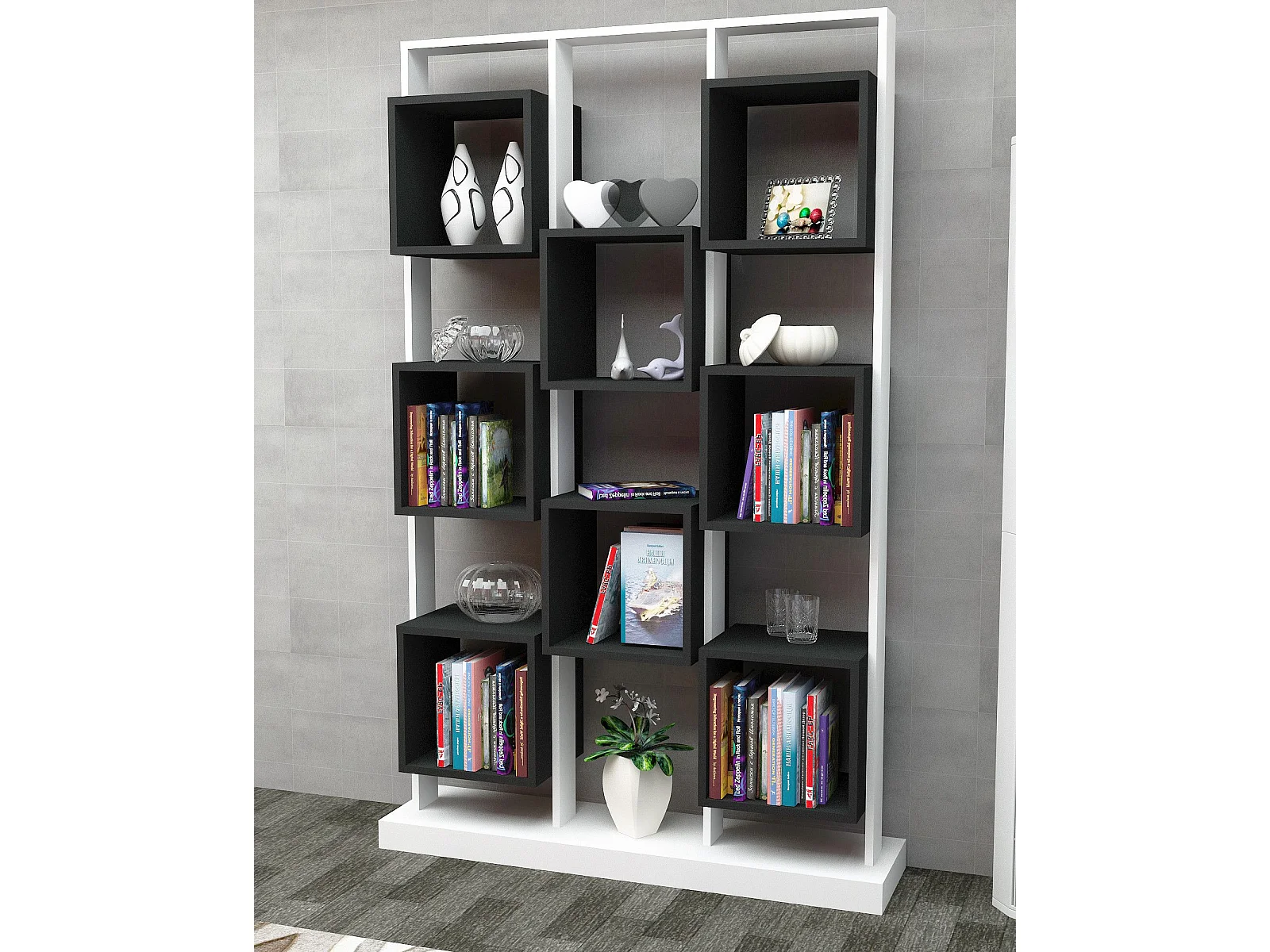 Estante estilosa, 120 x 120 x 25 cm, branca e preta | Painel de partículas 100% revestido em melamina, 18 mm de espessura | Perfeita para de
