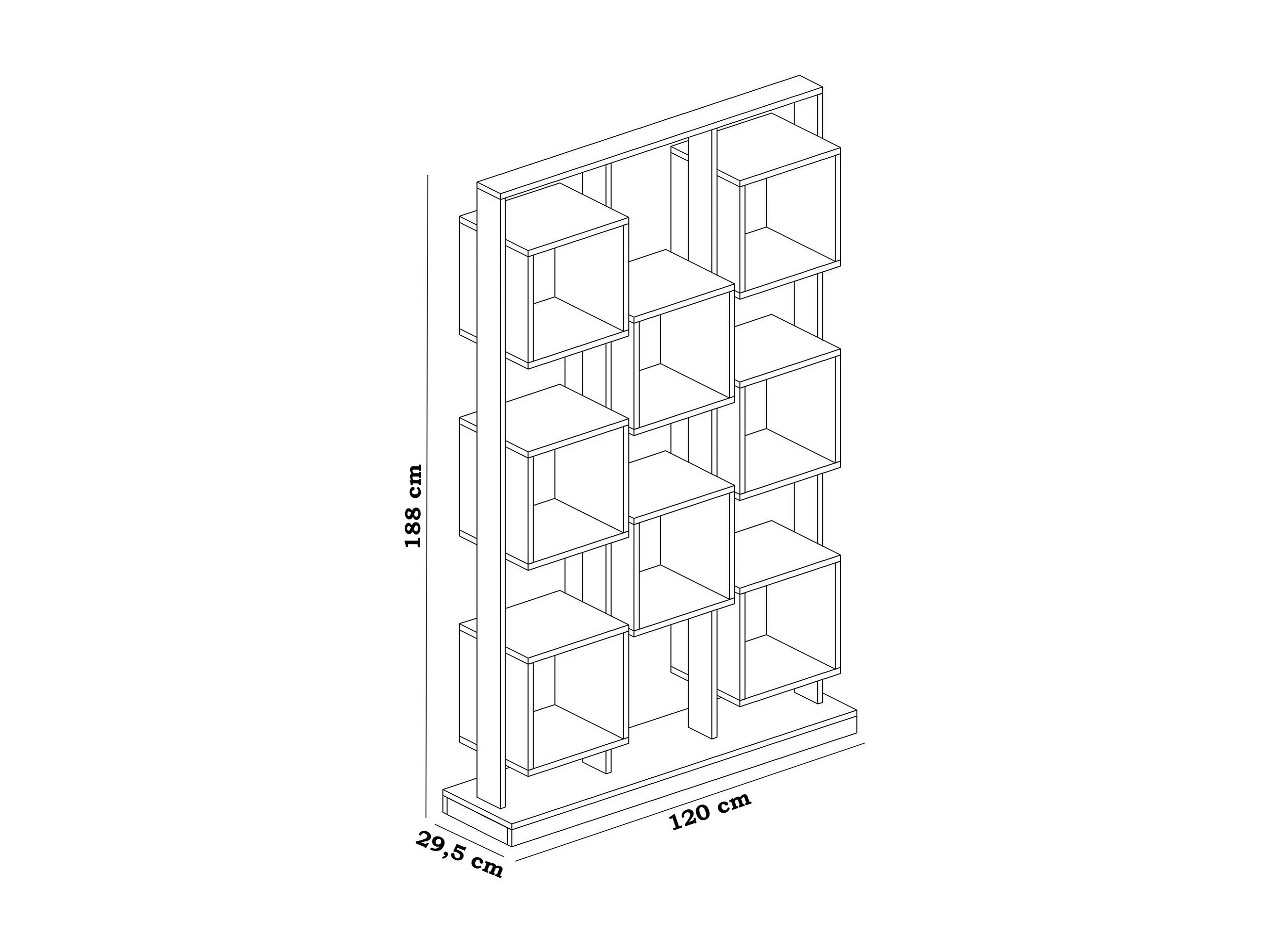 Estante moderna – 120 cm x 188 cm x 29,5 cm – Preto e Branco – Painel de partículas revestido de melamina