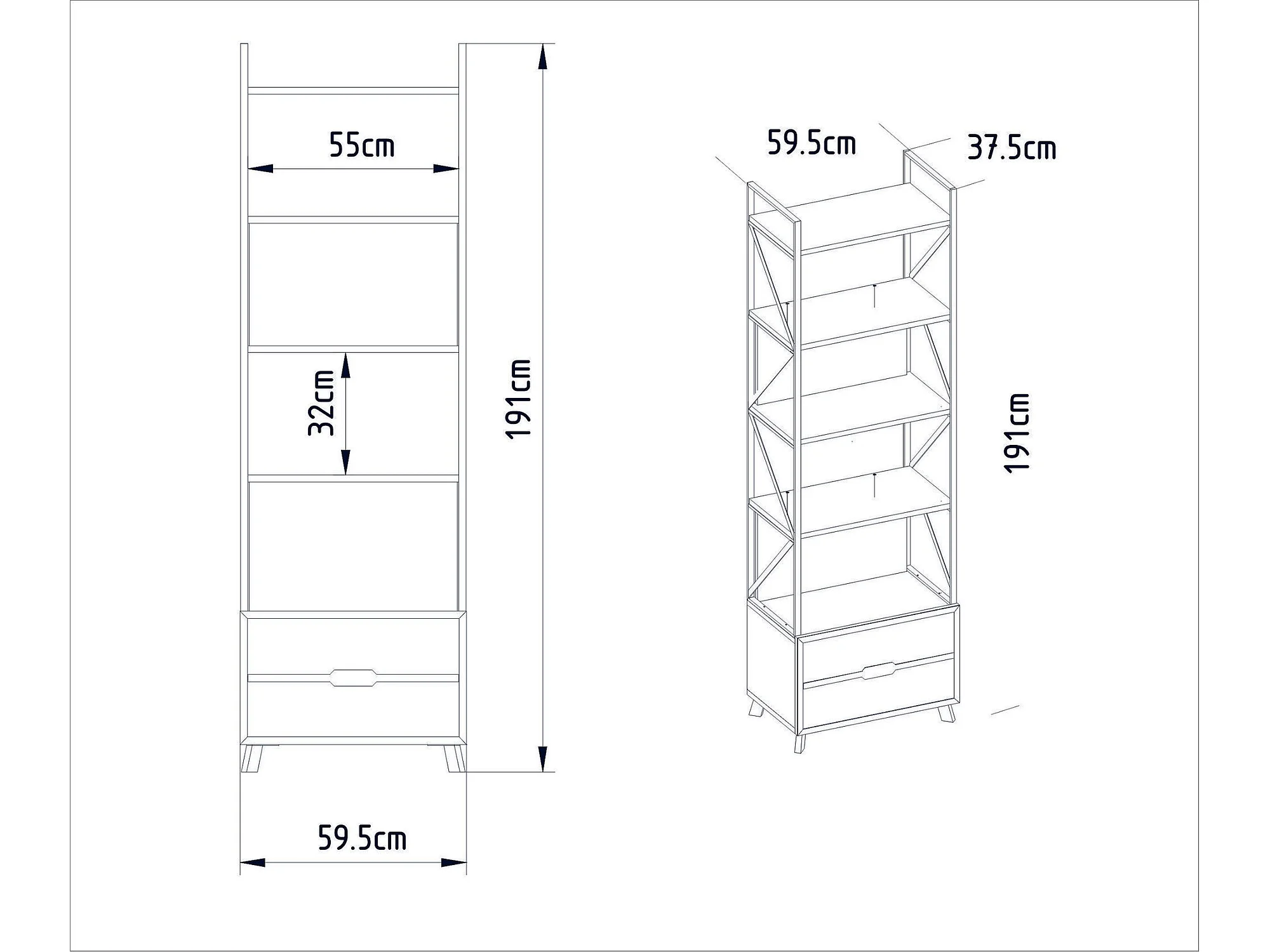 Estante de livros – 60 cm x 149.5 cm x 29 cm – Branco e Preto – Metal e Painéis de Partículas