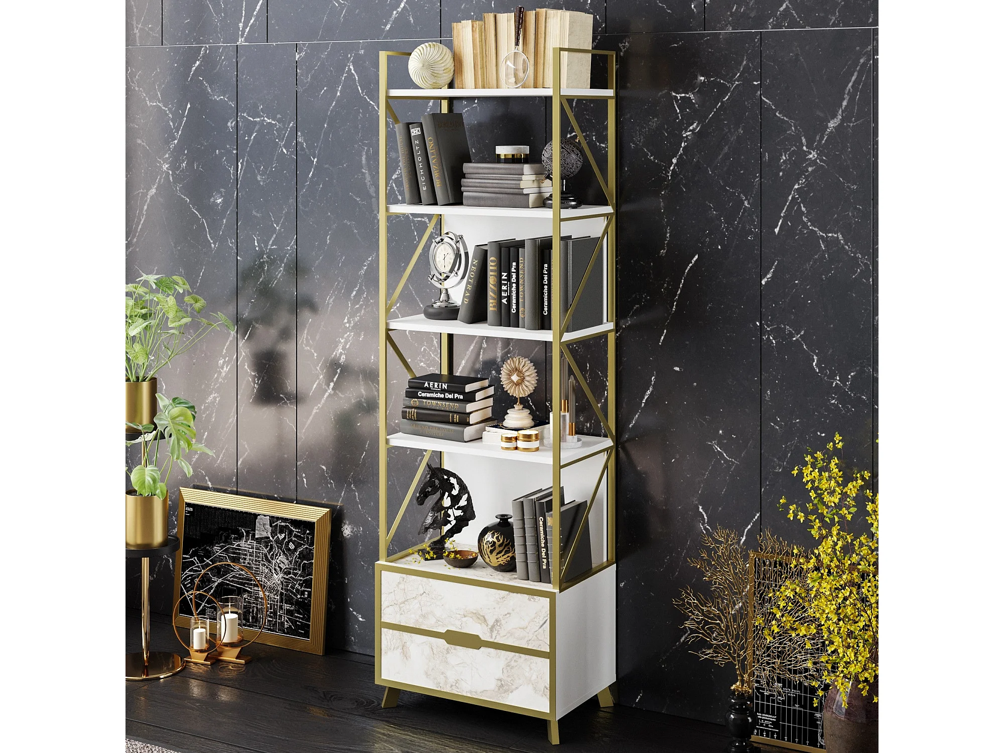 Estante de Mármore Branco e Dourado - Sofisticação e Estilo para o Seu Espaço