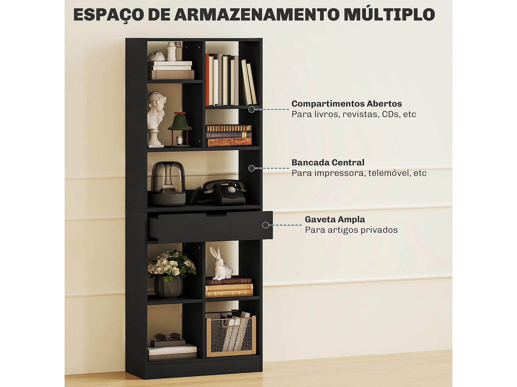 Biblioteca 2 gavetas Romane madeira e preto 195cm