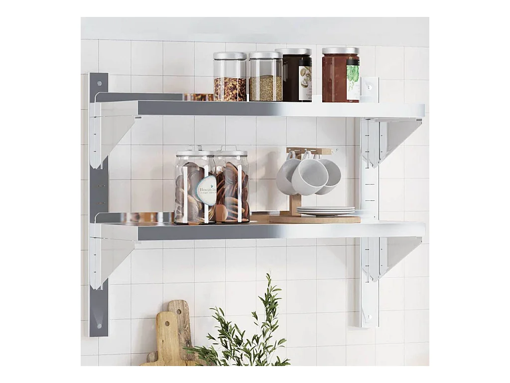 Estante parede 2 prateleiras 100x23,5x60cm aço inoxidável prata