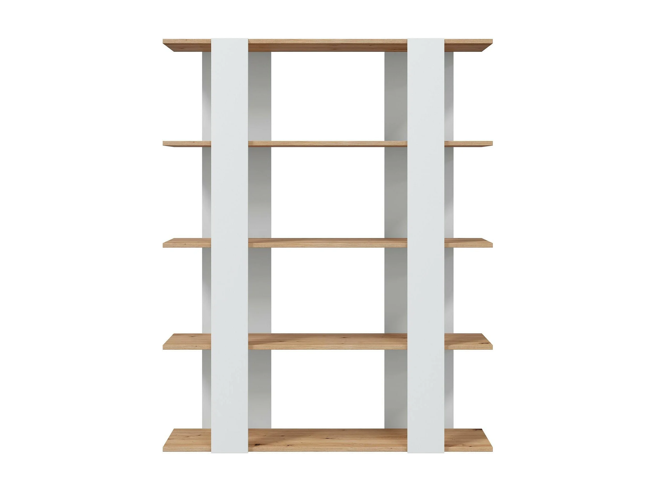Estante Watervliet, Estante de escritório com 5 prateleiras, Estante, Biblioteca, 108x31h136 cm, Carvalho Atado e Branco Brilhante