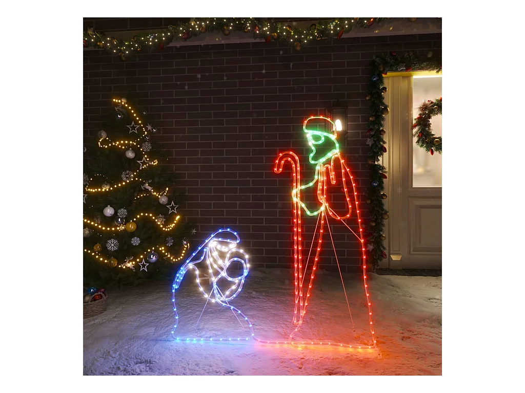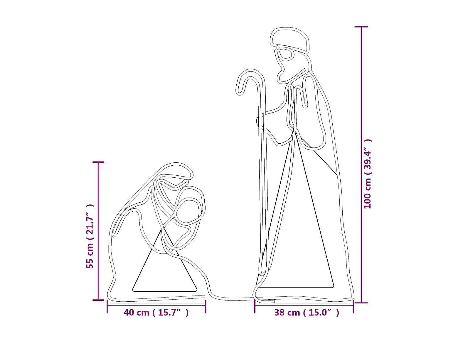 Estatueta de Natal Maria e José com 264 LEDs 40x55 e 38x100cm