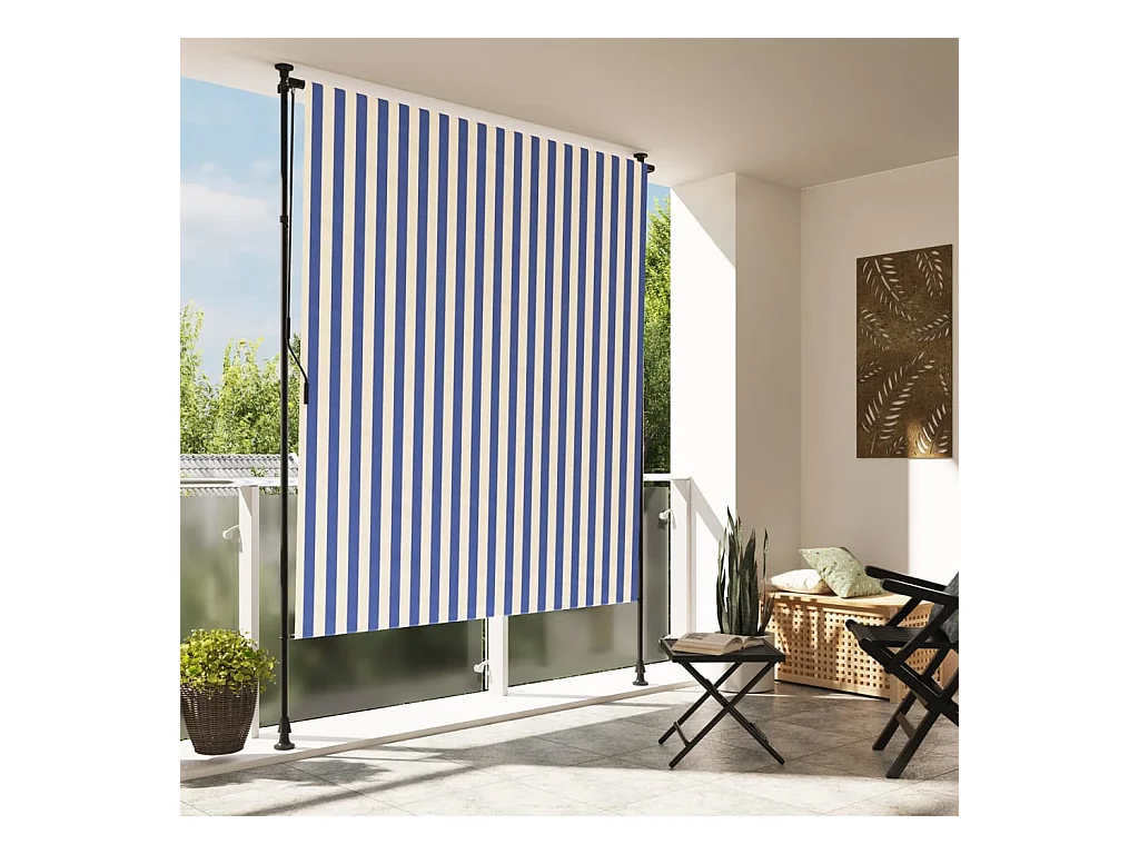 Estore de rolo para exterior 150x270cm tecido/aço azul e branco