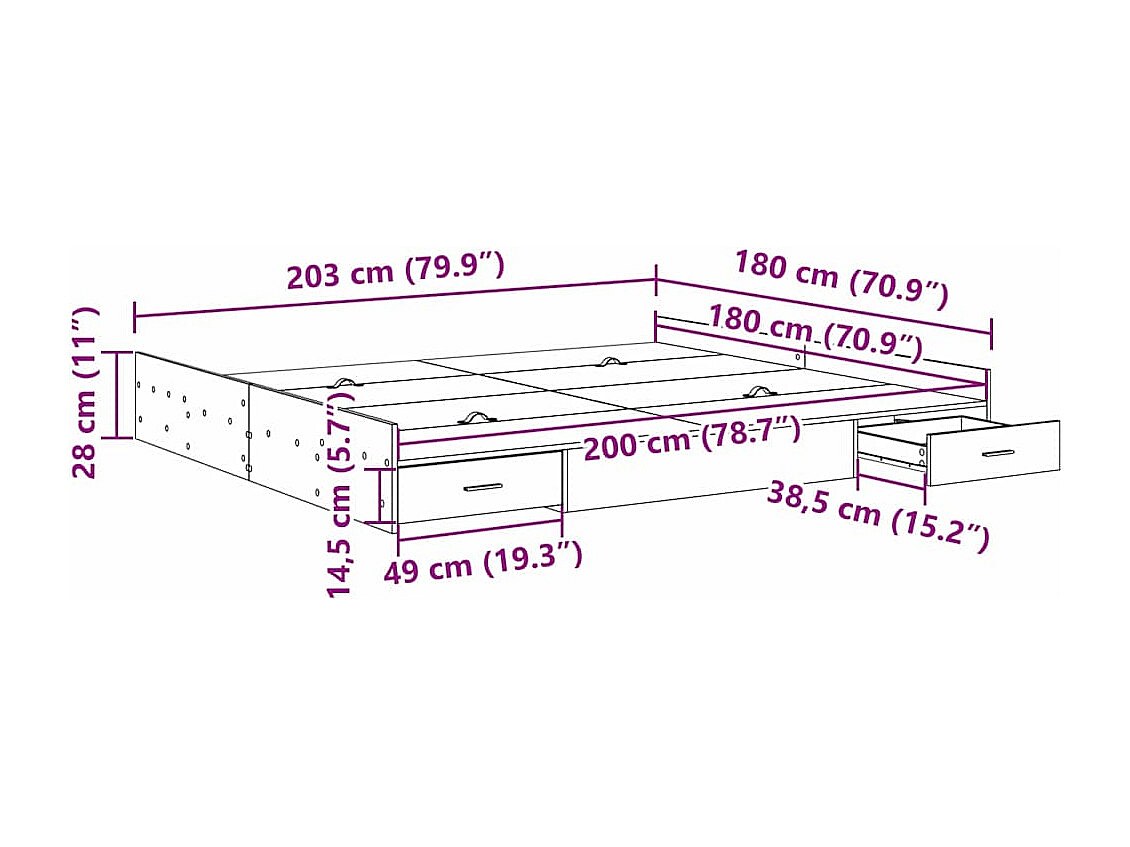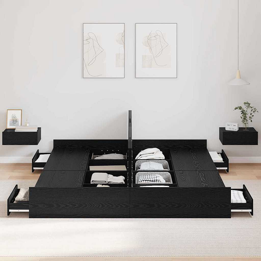Estrutura de Cama com Gavetas Carvalho preto 180 x 200 cm