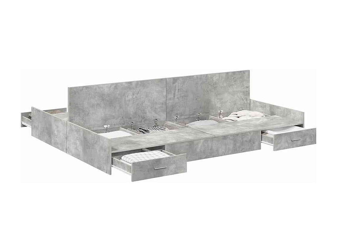 Estrutura de cama c/ gavetas derivados de madeira cinza-cimento