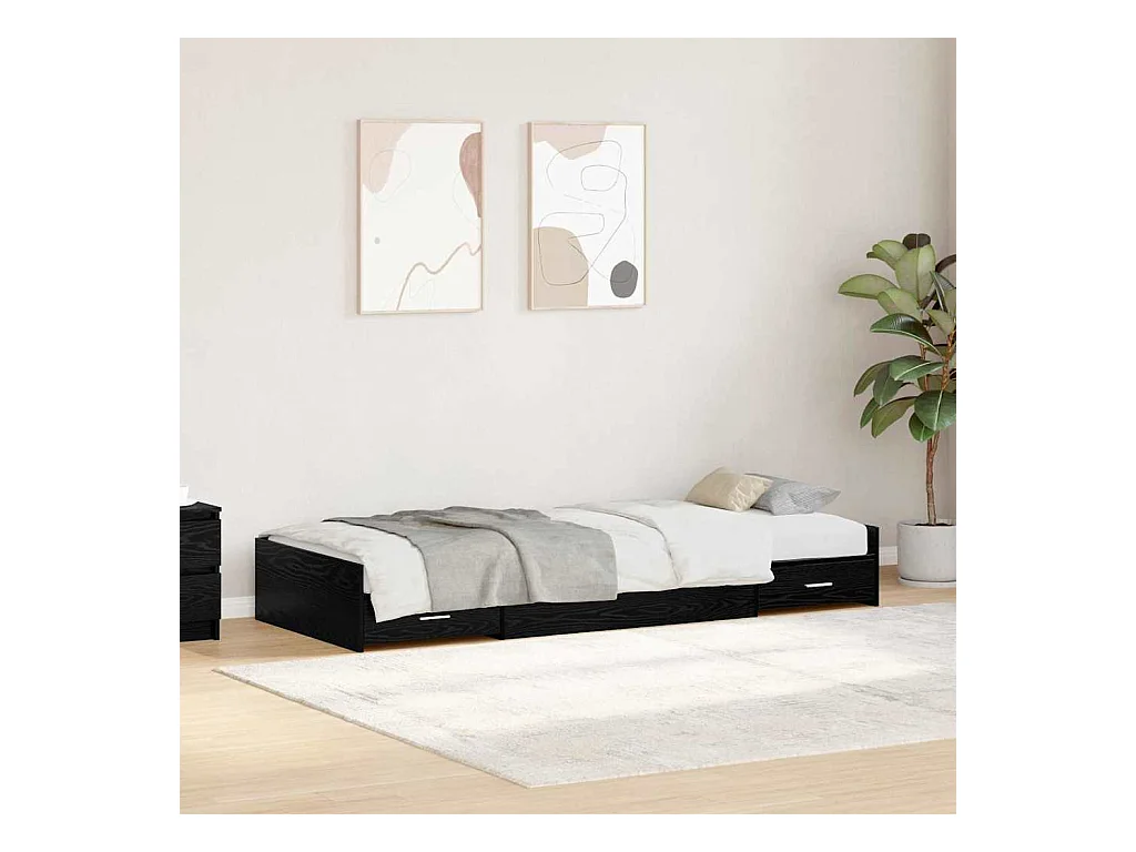 Sofá-cama c/ gavetas 75x190 cm derivados de madeira preto