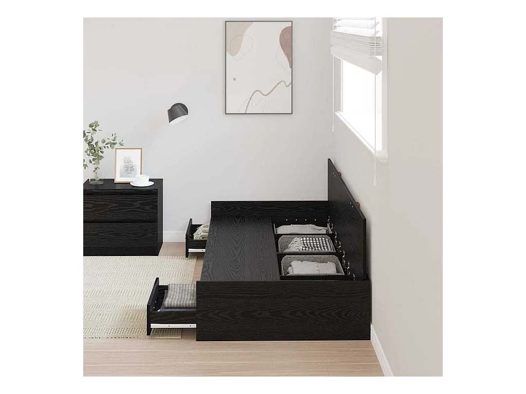 Estrado de cama com arrumação com gaveta Carvalho Preto 80 x 200 cm