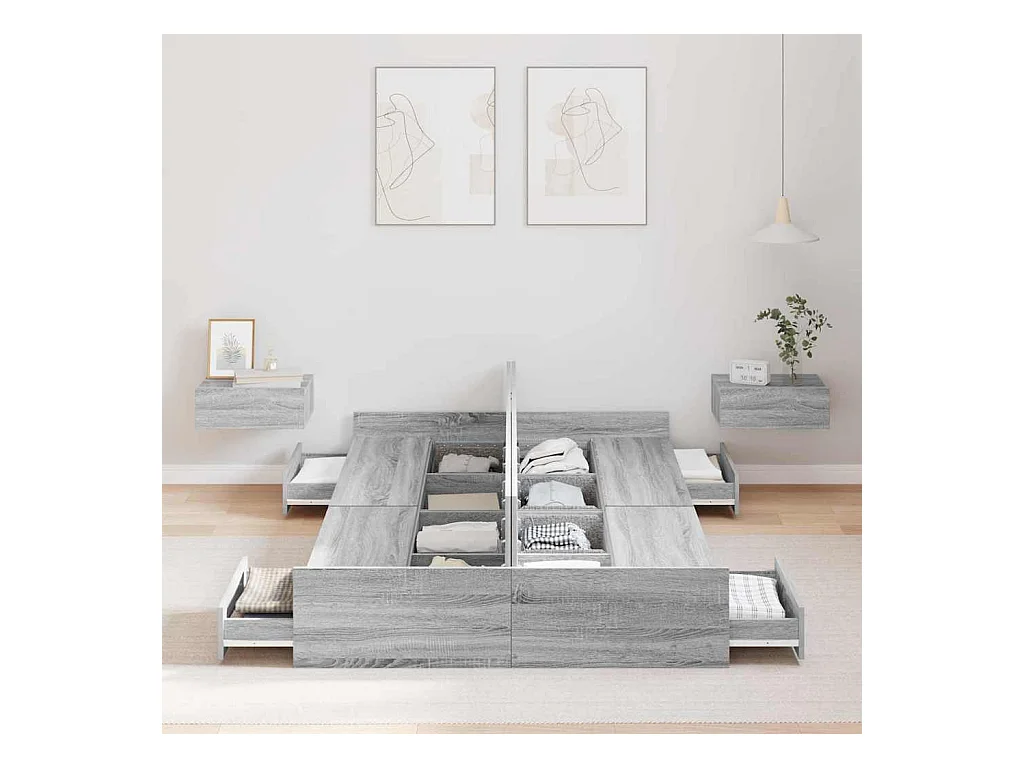 Estrutura de cama c/ gavetas derivados madeira cinza sonoma