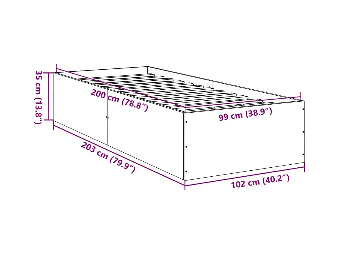Estrutura cama 100x200 cm derivados de madeira carvalho sonoma