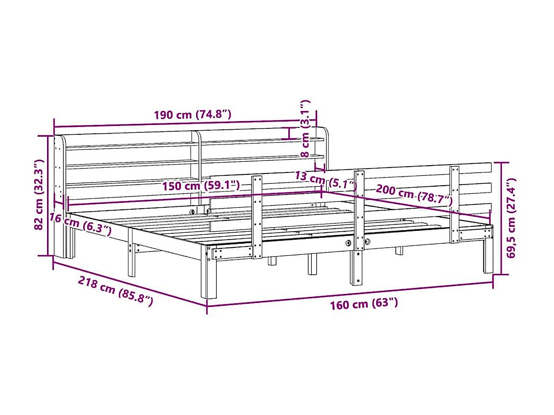 Cama sem colchão 150x200 cm madeira de pinho maciça
