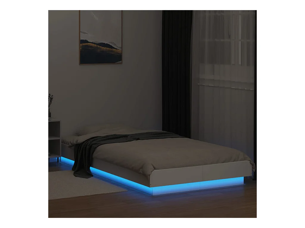 Estrutura cama c/ luzes LED 75x190 cm derivados madeira branco
