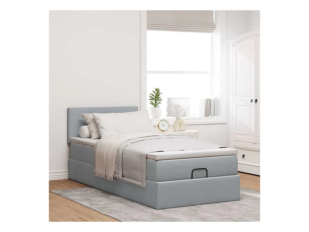 Estrutura cama otomana colchão 100x200 cm tecido cinzento claro