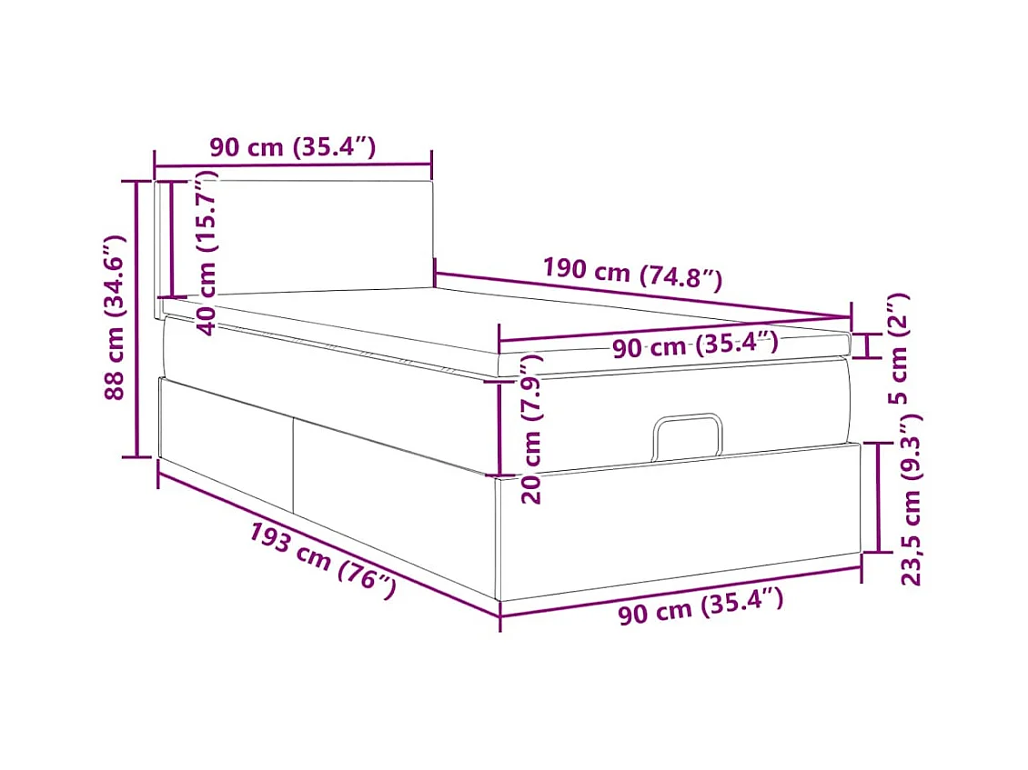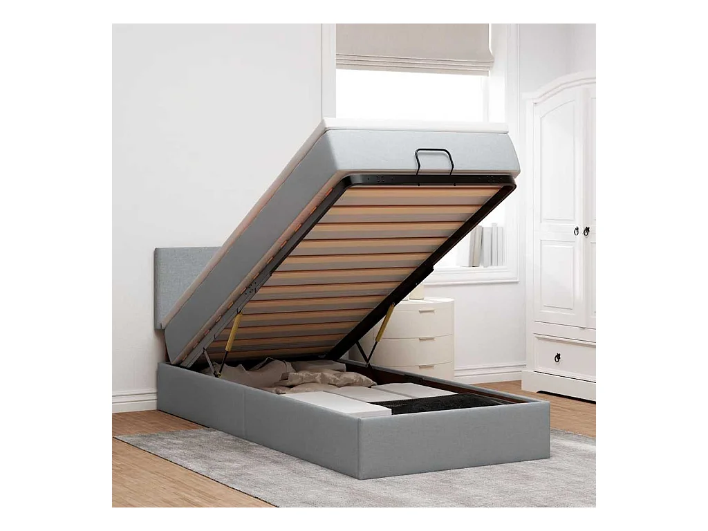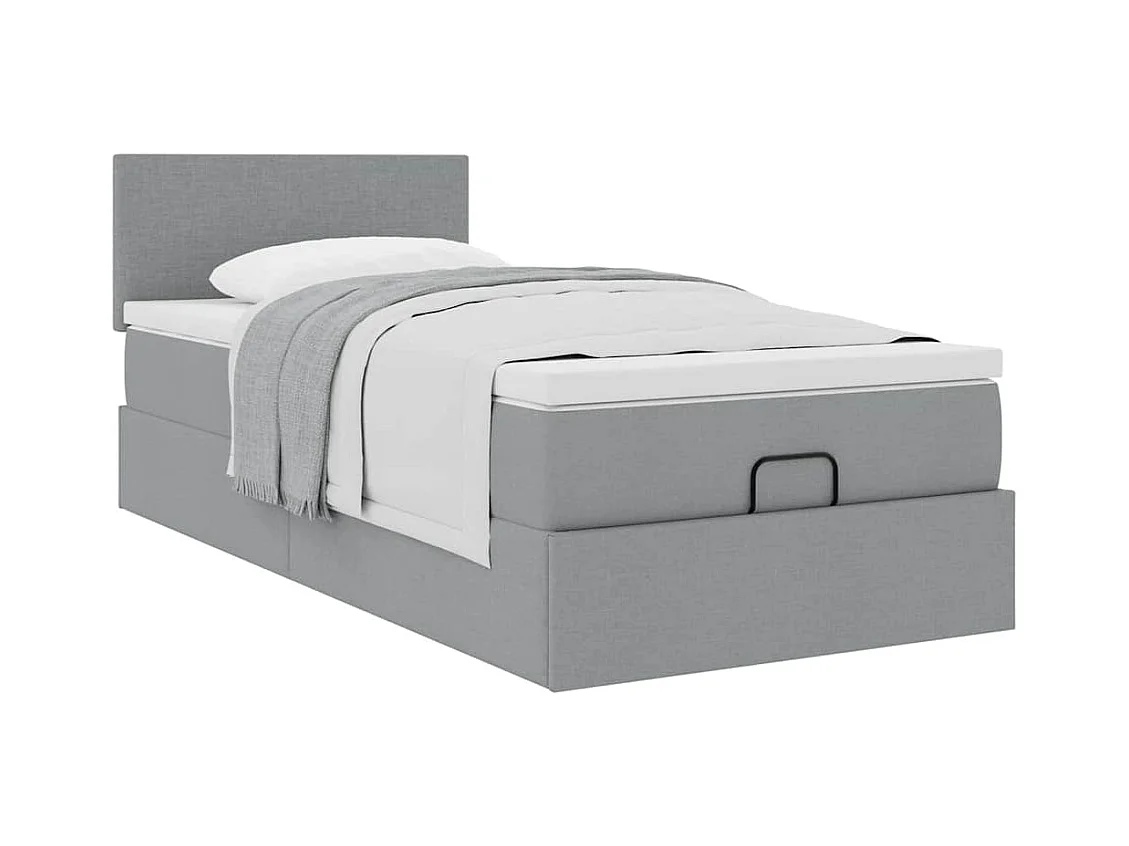 Estrutura cama otomana colchão 90x190 cm tecido cinzento claro