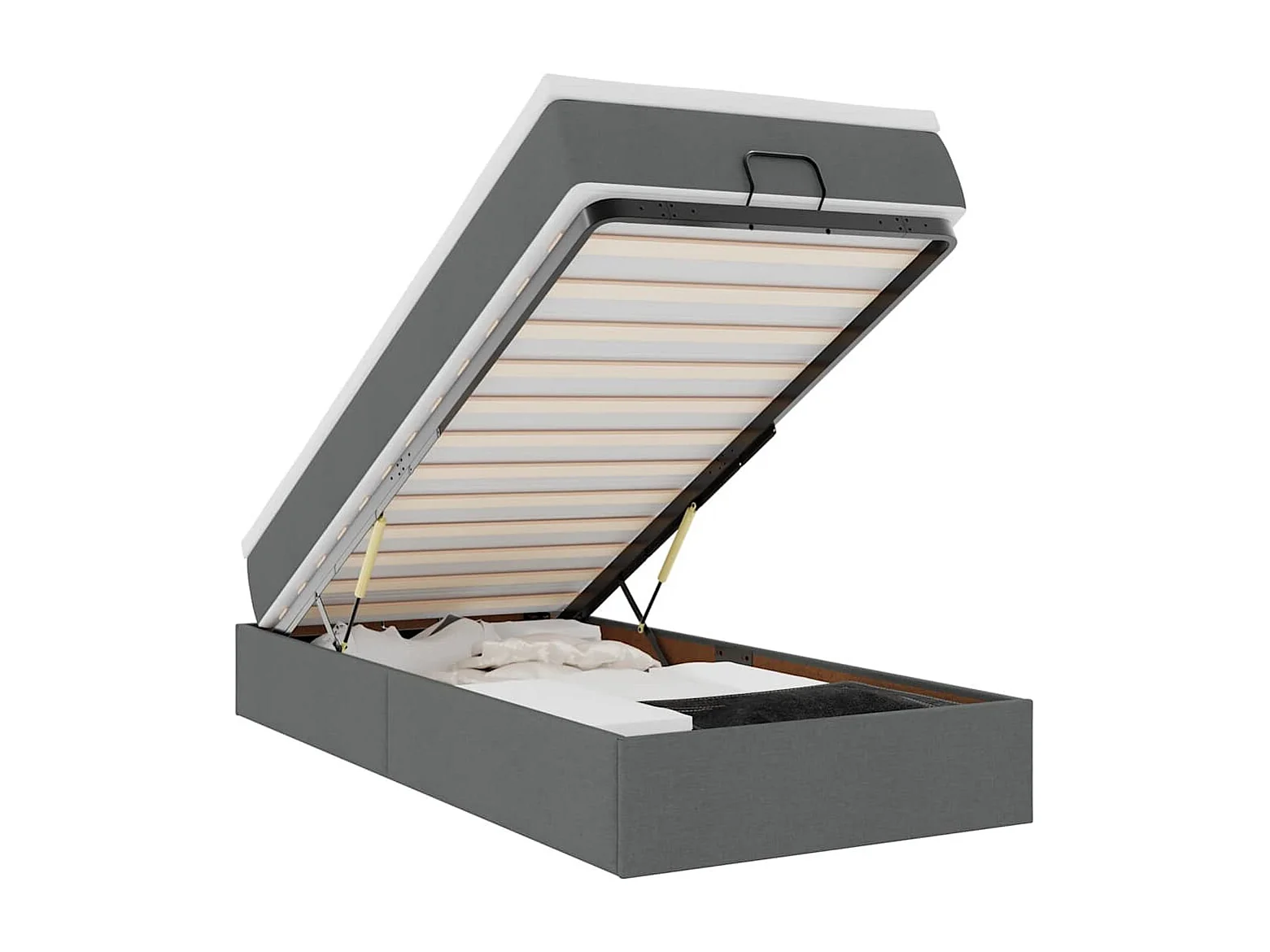 Estrutura cama otomana colchão 90x190 cm tecido cinzento escuro