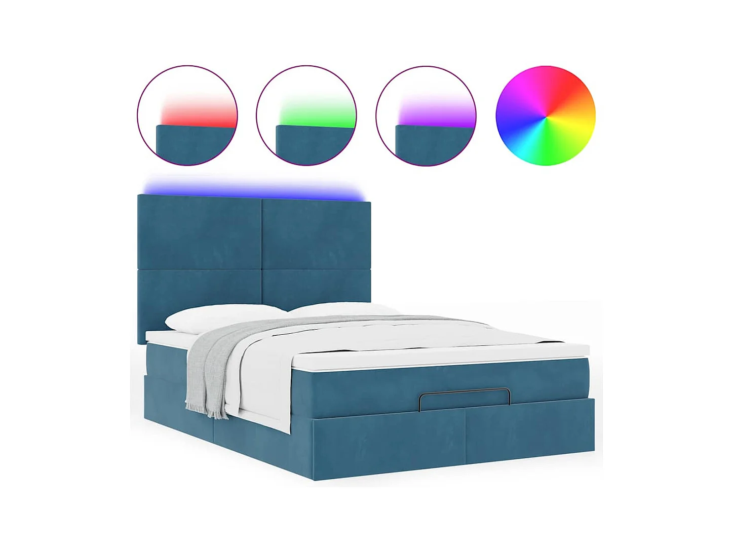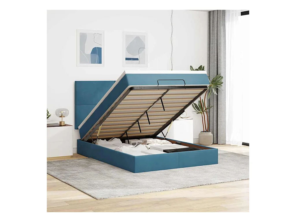 Estrutura cama otomana colchões 140x190 cm veludo azul escuro